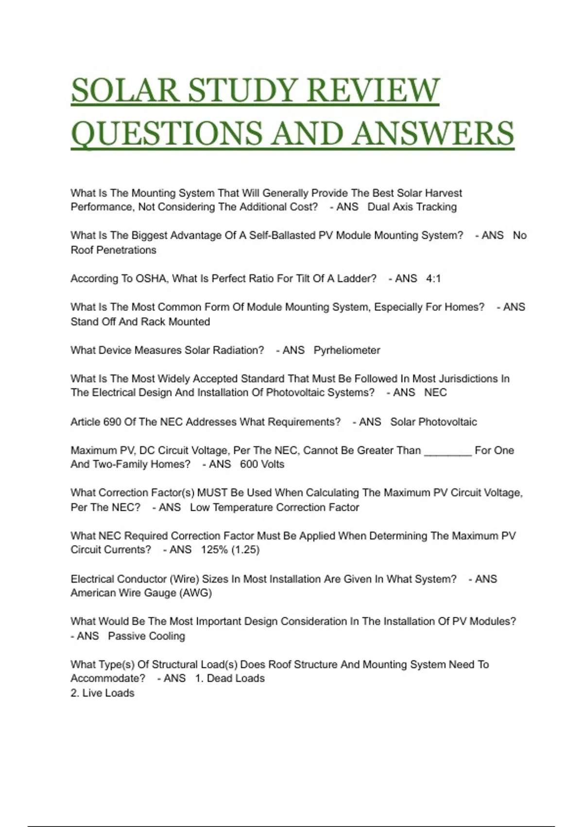 SOLAR STUDY REVIEW QUESTIONS AND ANSWERS