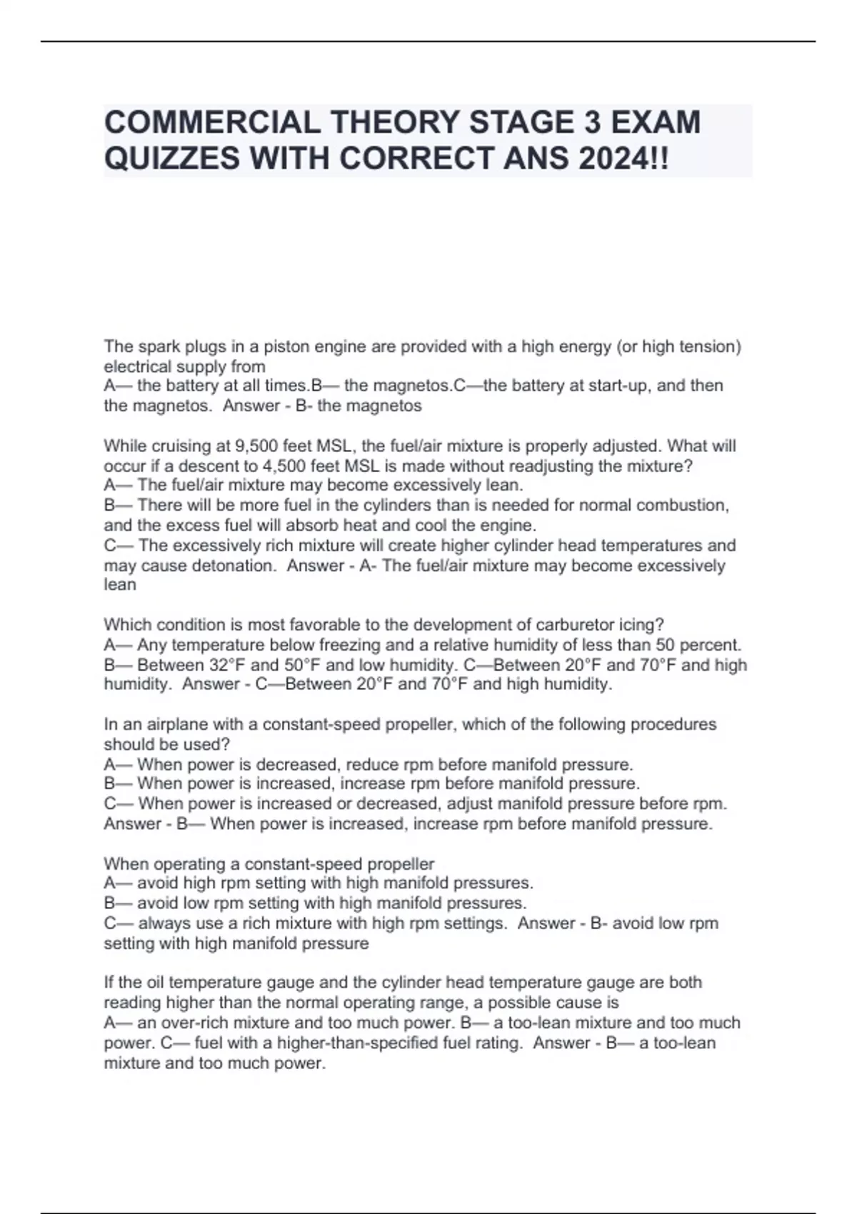 COMMERCIAL THEORY STAGE 3 EXAM QUIZZES WITH CORRECT ANS 2024!!