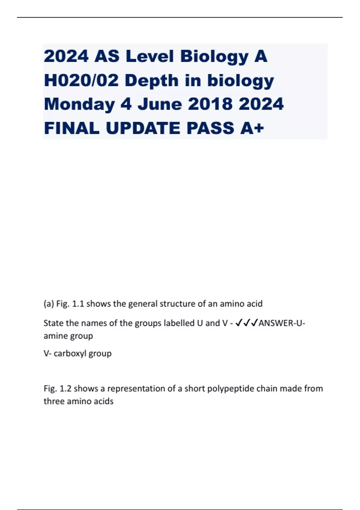 2024 AS Level Biology A H020/02 Depth in biology Monday 4 June FINAL UPDATE PASS A+