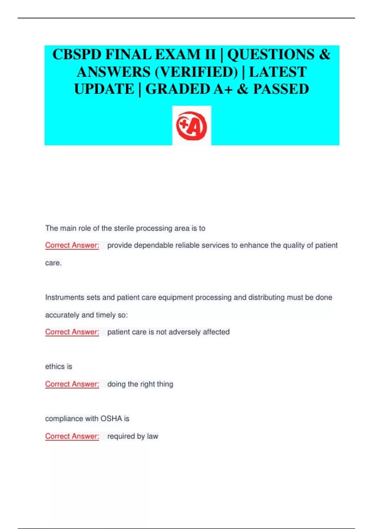 CBSPD FINAL EXAM II | QUESTIONS & ANSWERS (VERIFIED) | LATEST UPDATE | GRADED A+ & PASSED