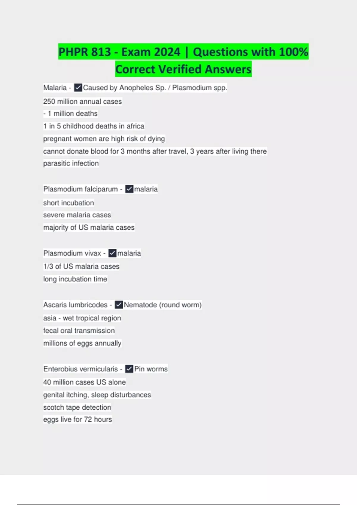 PHPR 813 - Exam 2024 | Questions with 100% Correct Verified Answers
