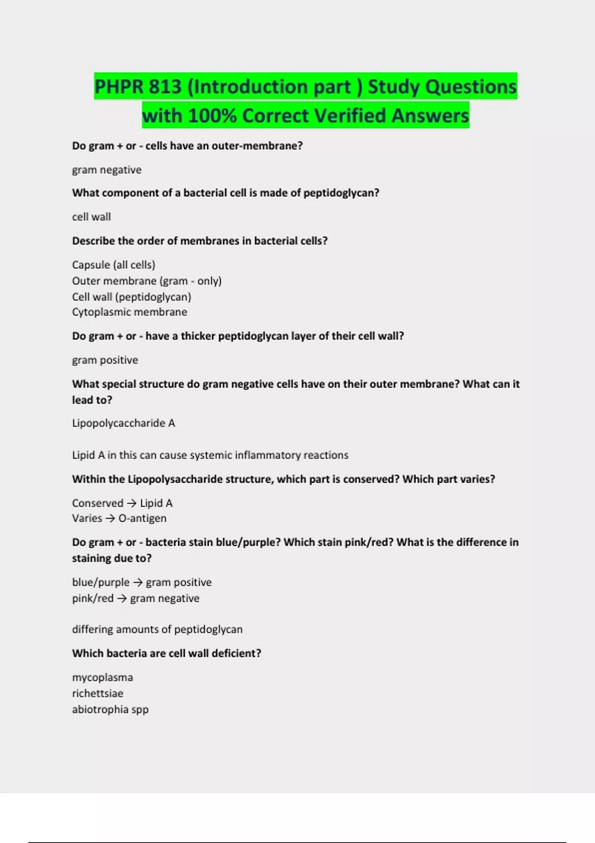 PHPR 813 (Introduction part ) Study Questions with 100% Correct Verified Answers