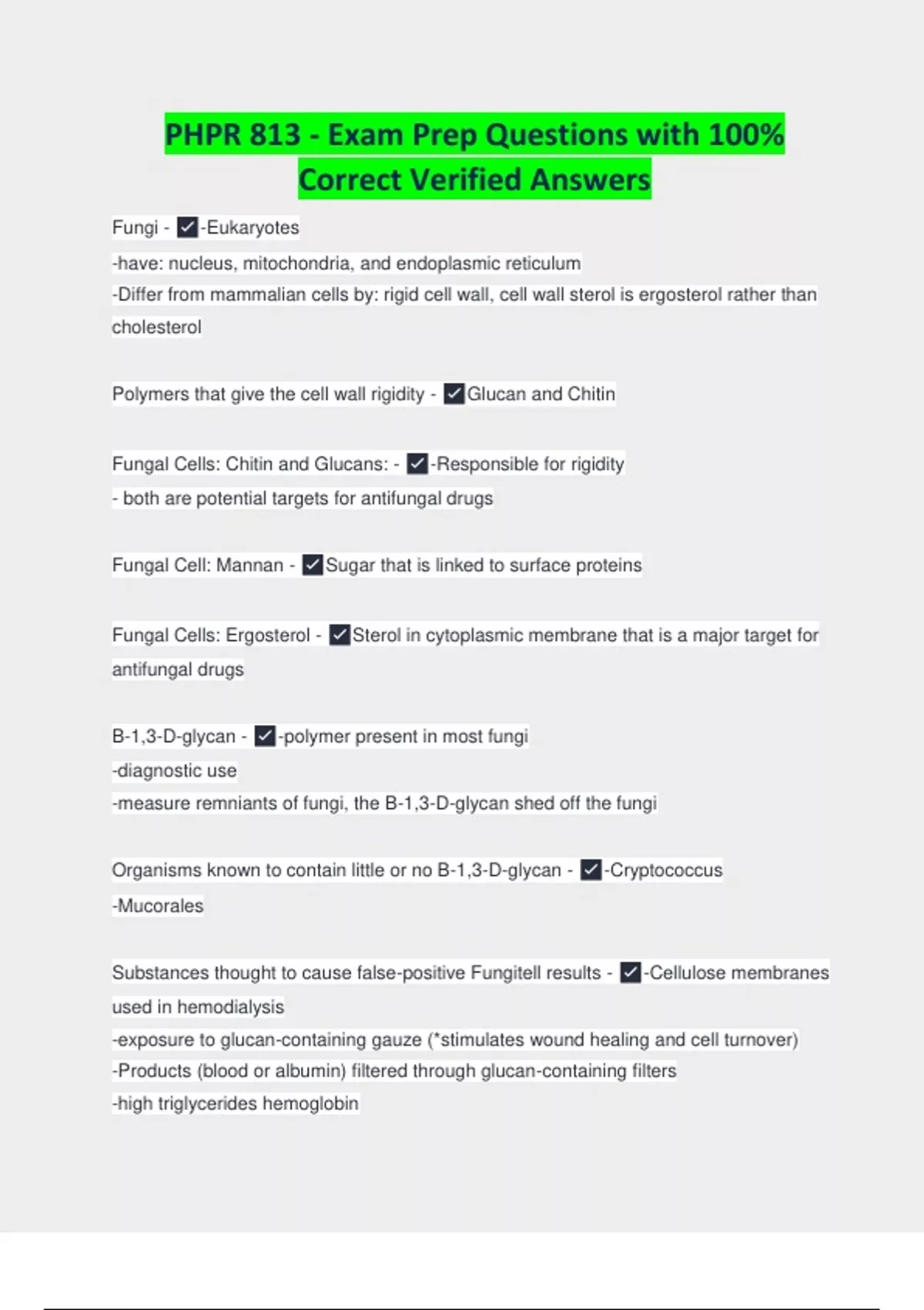PHPR 813 - Exam Prep Questions with 100% Correct Verified Answers