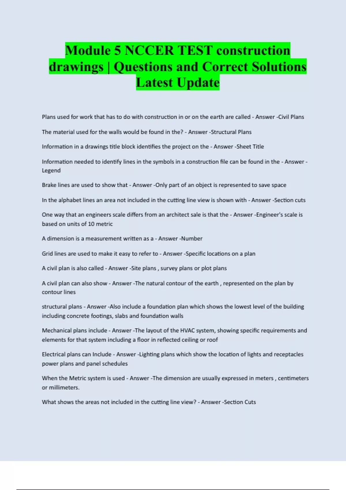 Module 5 NCCER TEST construction drawings | Questions and Correct Solutions Latest Update
