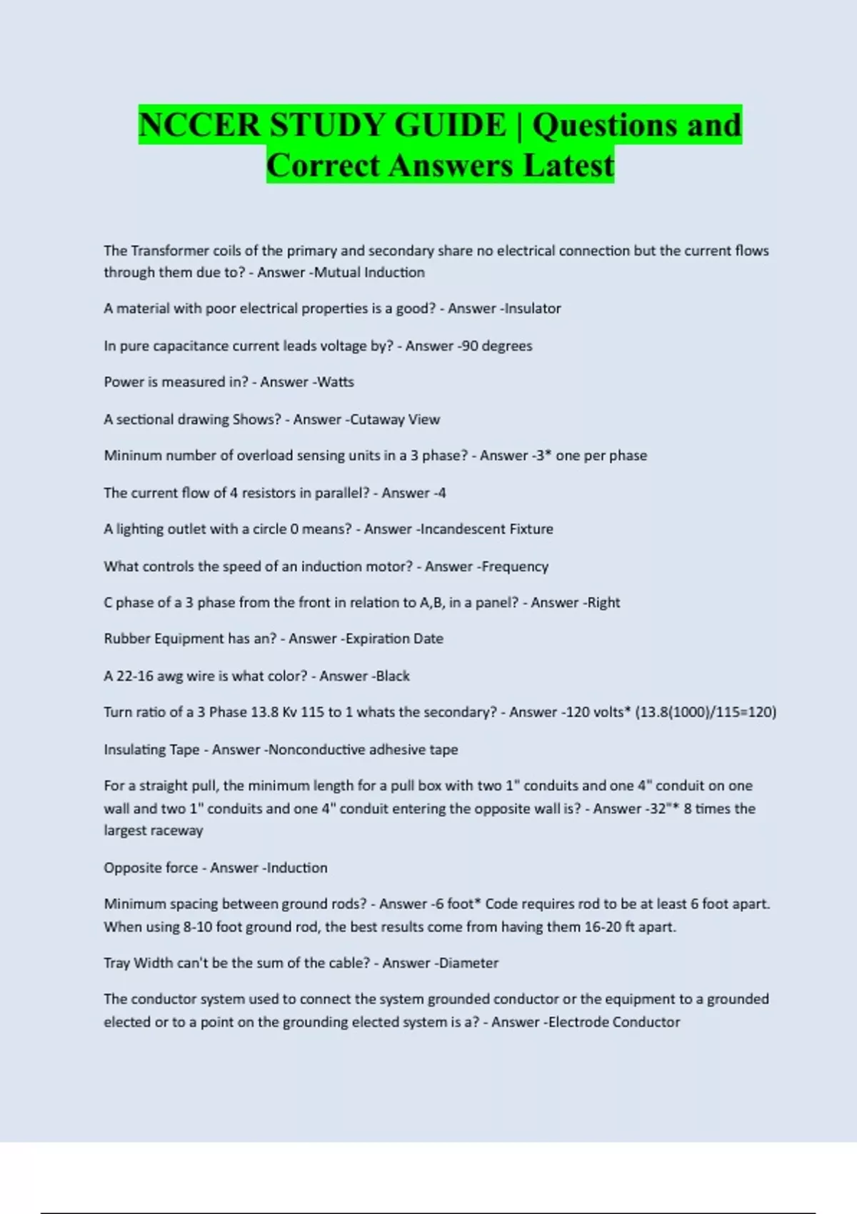 NCCER STUDY GUIDE | Questions and Correct Answers Latest