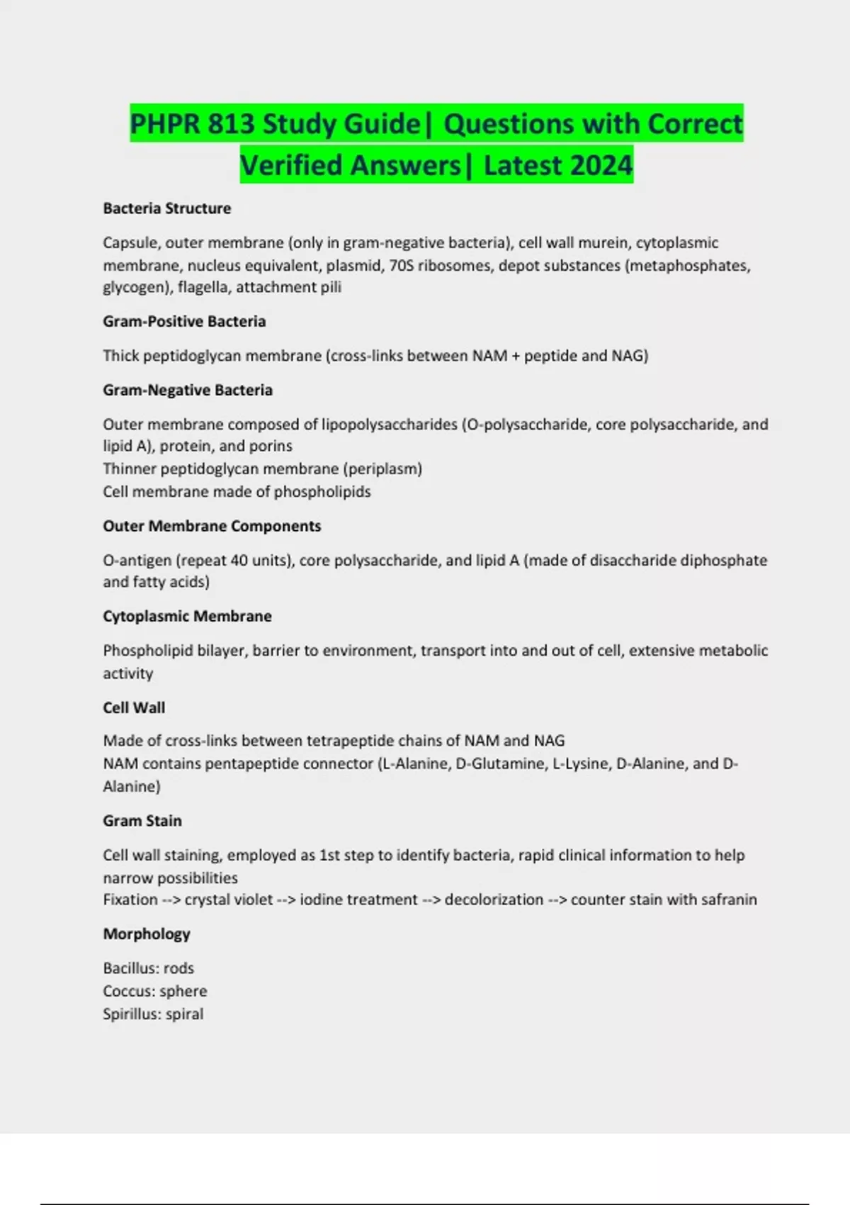 PHPR 813 Study Guide| Questions with Correct Verified Answers| Latest 2024