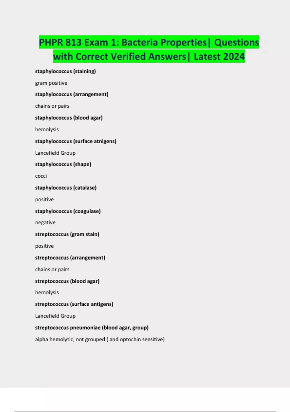 PHPR 813 Exam 1: Bacteria Properties| Questions with Correct Verified Answers| Latest 2024
