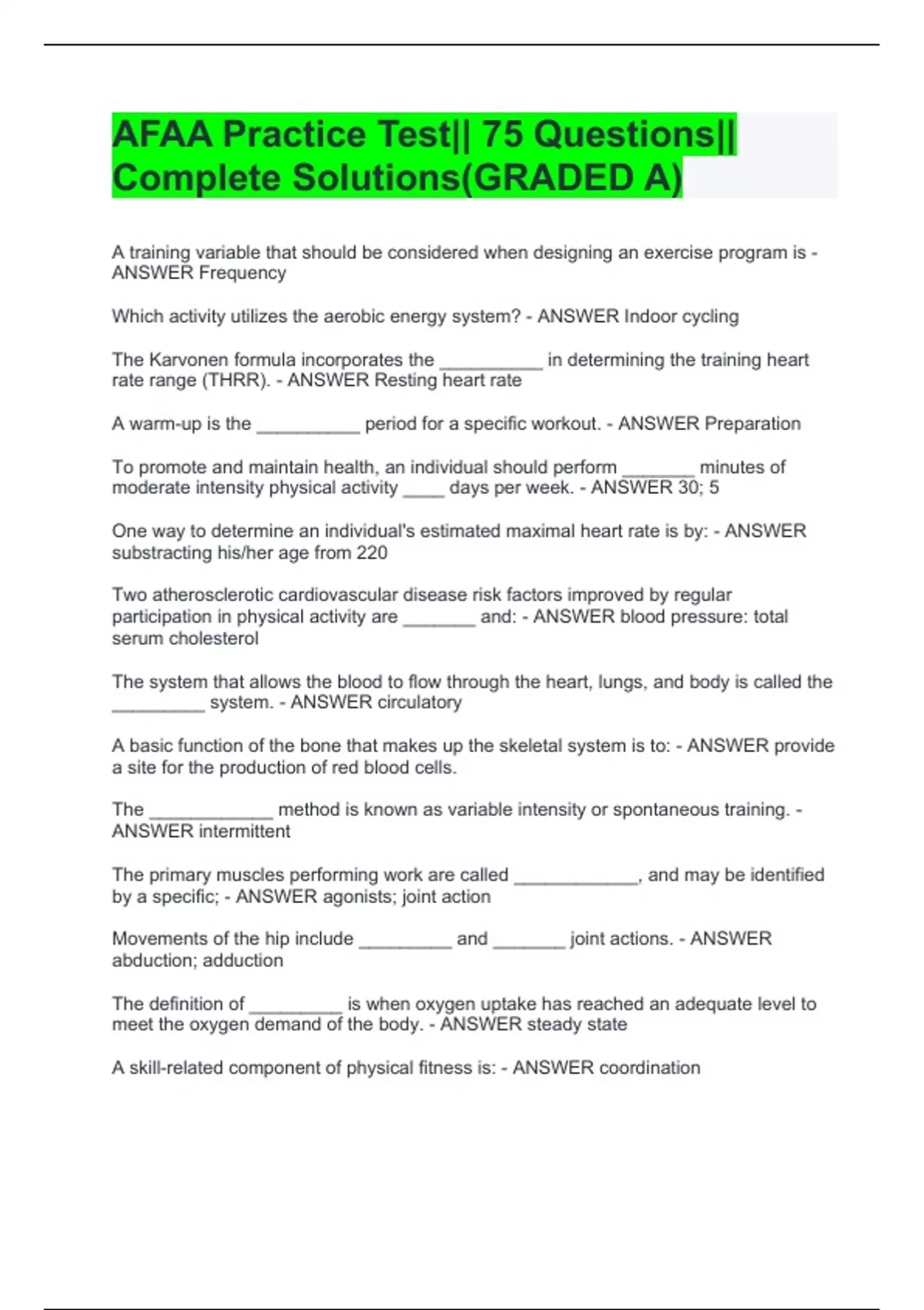 AFAA Practice Test|| 75 Questions|| Complete Solutions(GRADED A)