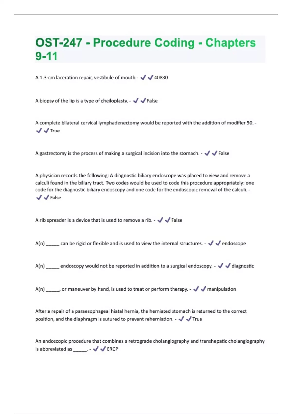 OST-247 - Procedure Coding - Chapters 9-11 Questions And Answers With Verified Solutions