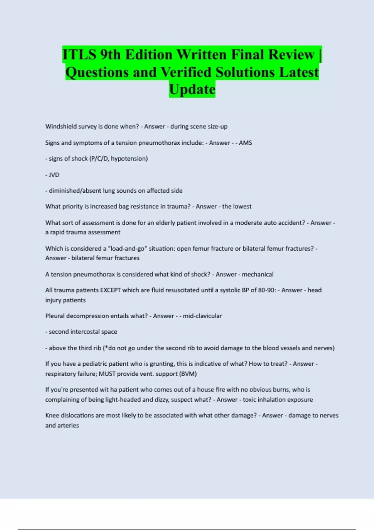 ITLS 9th Edition Written Final Review | Questions and Verified Solutions Latest Update