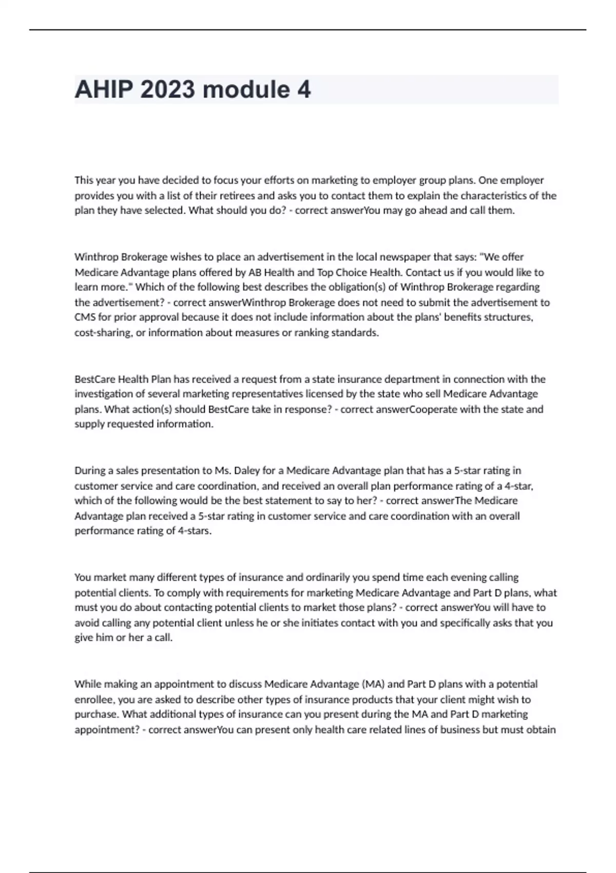 AHIP 2023 module 4 questions ad correct answers 2024