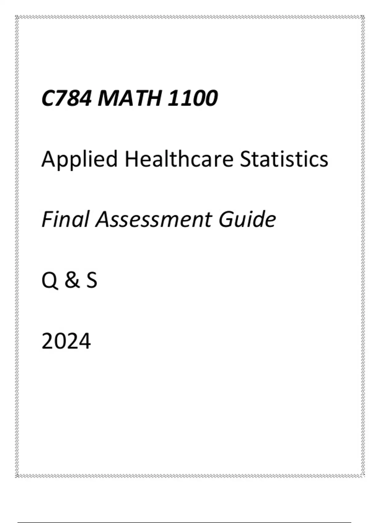 (WGU C784) MATH 1100 Applied Healthcare Statistics Final Assessment Guide Q & S 2024(WGU C784) MATH 1100 Applied Healthcare Statistics Final Assessment Guide Q & S 2024