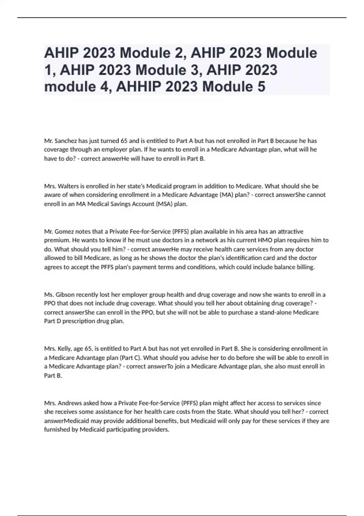 AHIP 2023 Module 2, AHIP 2023 Module 1, AHIP 2023 Module 3, AHIP 2023 module 4, AHHIP 2023 Module 5 questions and correct answers 2024