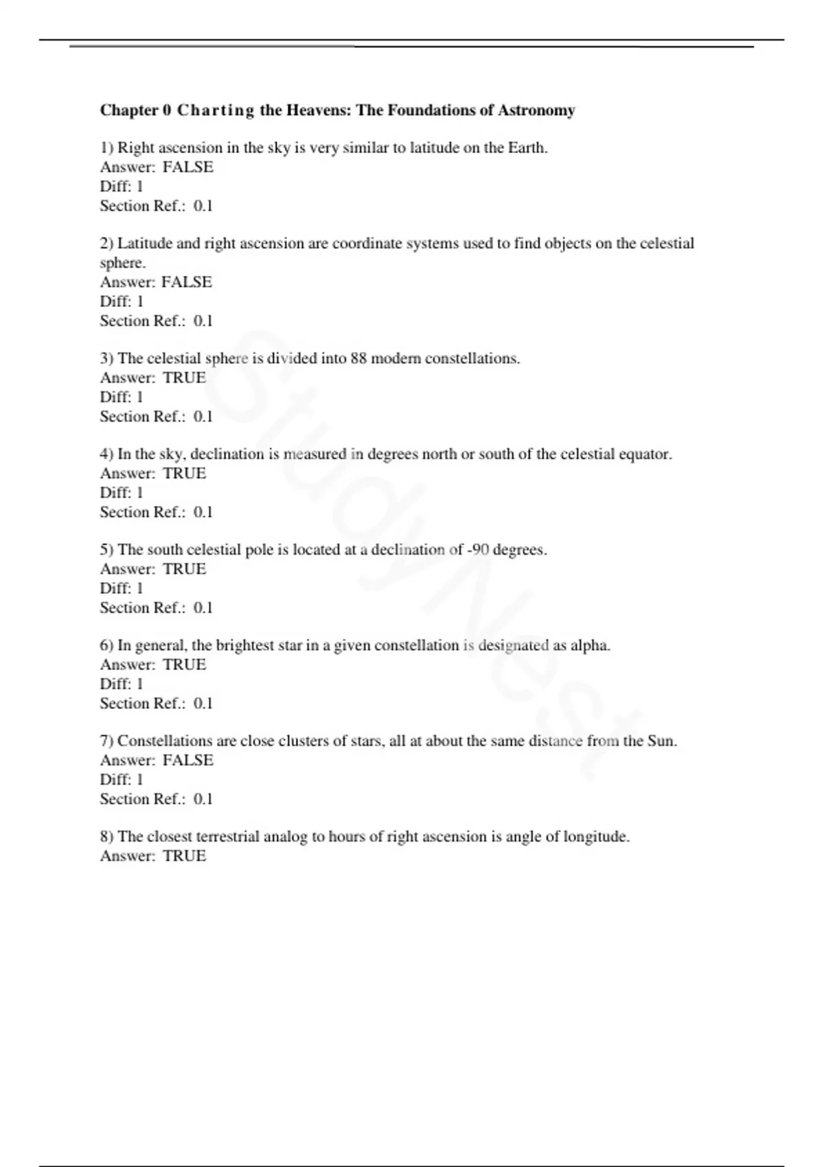 8) The closest terrestrial analog to hours of right ascension is angle of longitude.