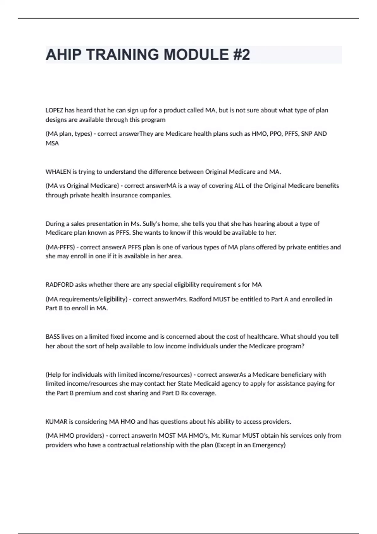 AHIP TRAINING MODULE #2 questions and well revised answers 2024