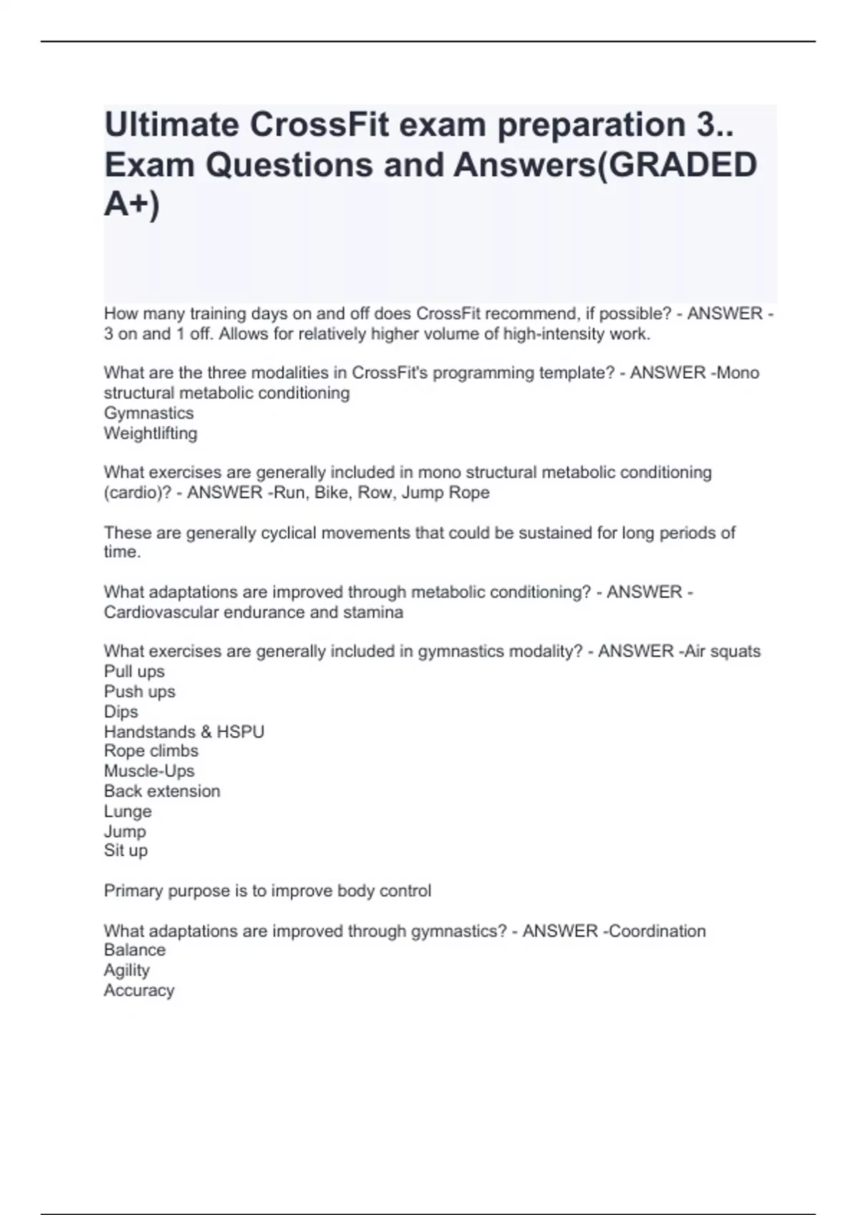 Ultimate CrossFit exam preparation 3.. Exam Questions and Answers(GRADED A+)