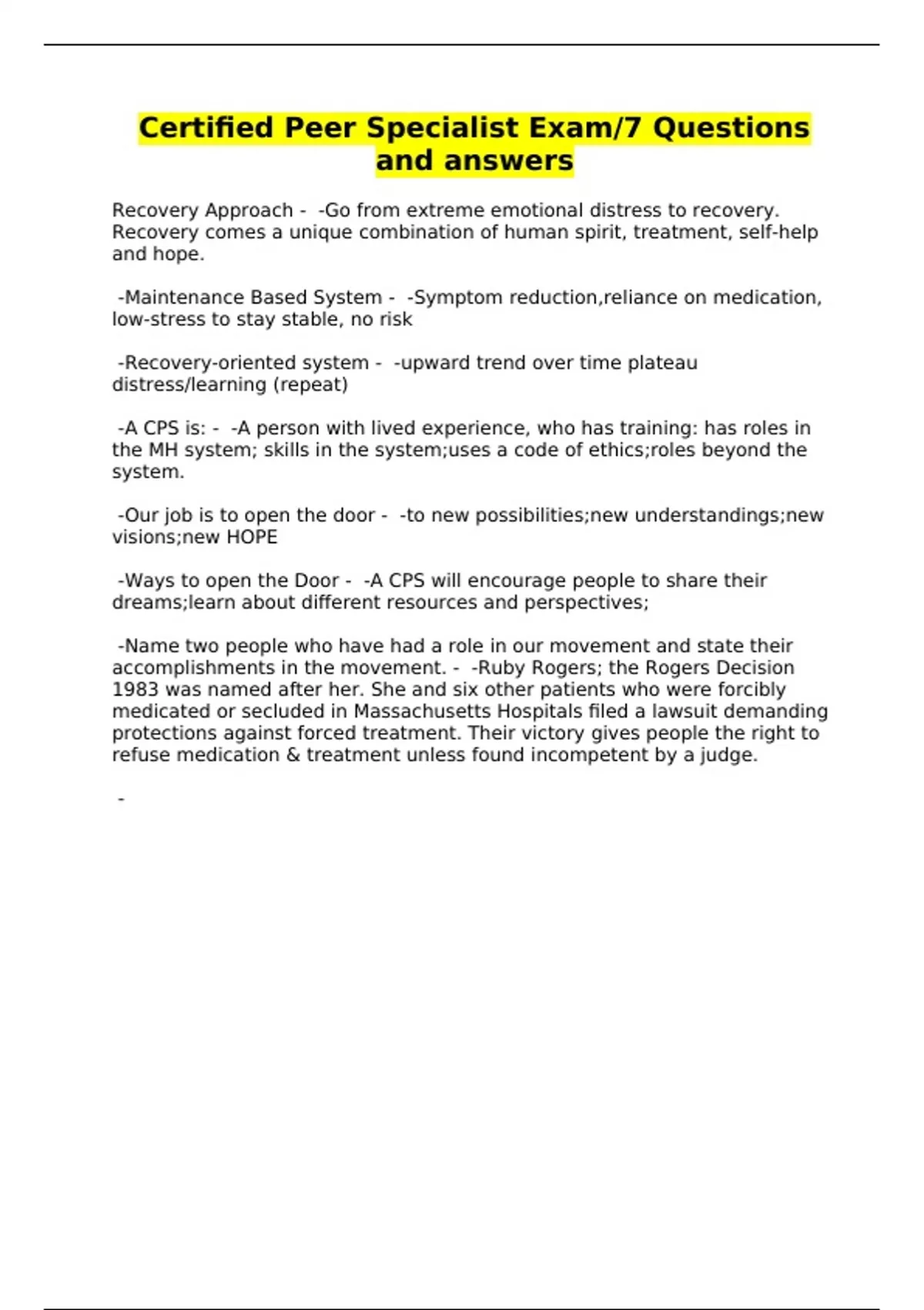 certified peer specialist exam7 questions and ans
