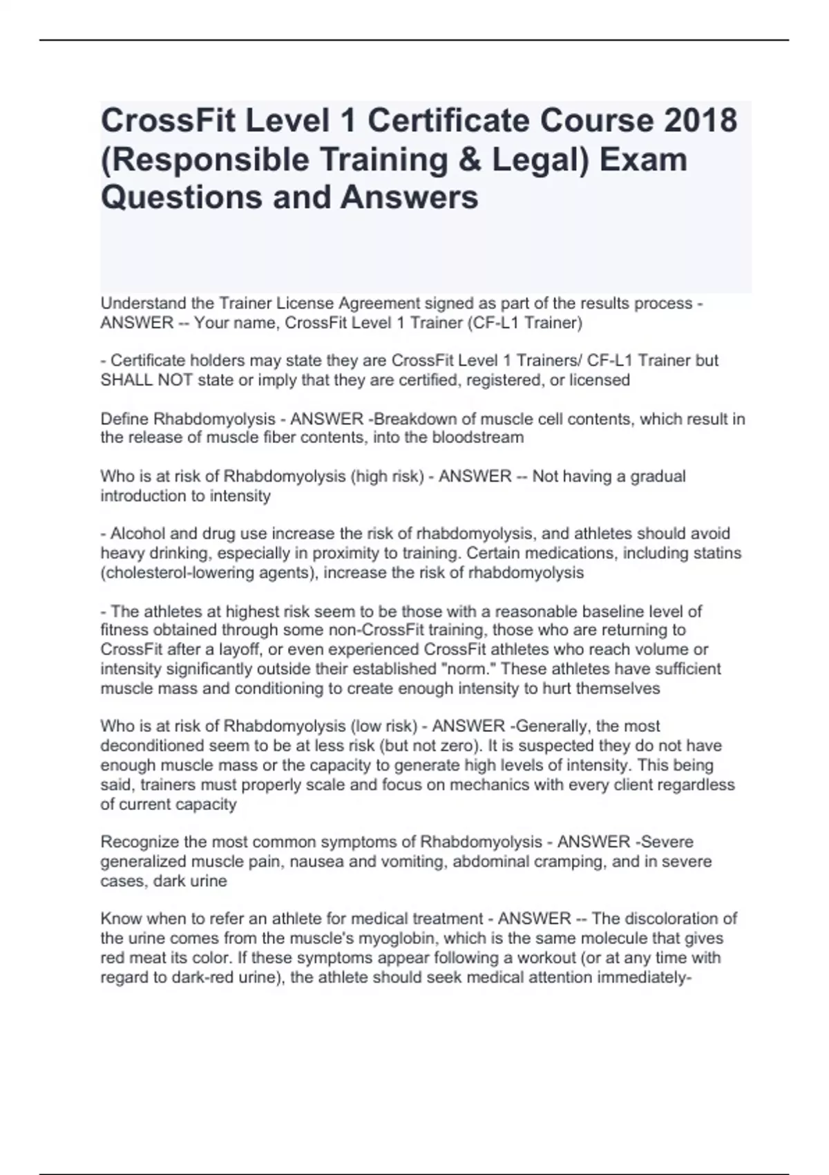 CrossFit Level 1 Certificate Course 2018 (Responsible Training & Legal) Exam Questions and Answers