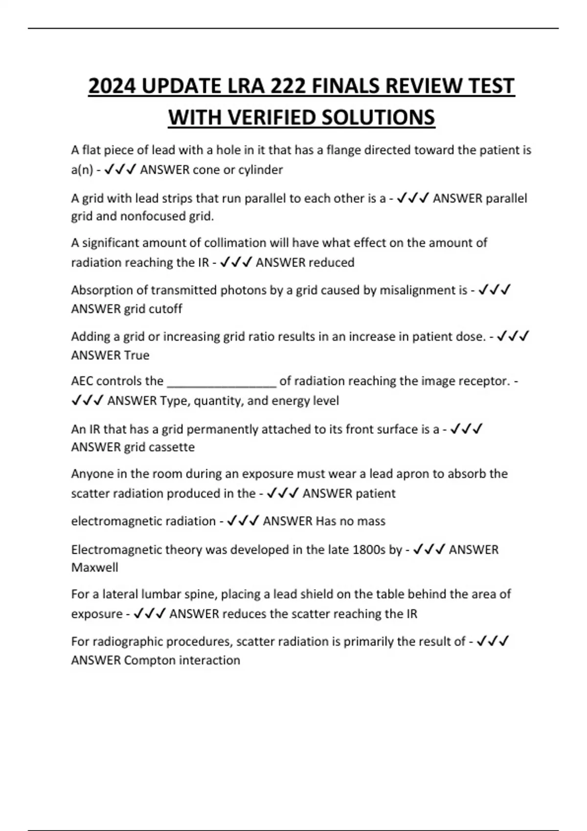 2024 UPDATE LRA 222 FINALS REVIEW TEST WITH VERIFIED SOLUTIONS