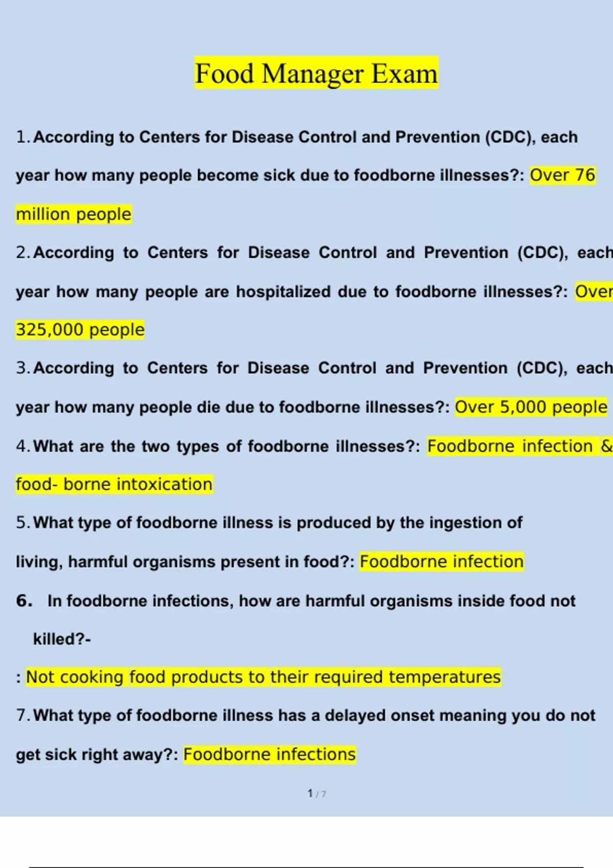 Food Manager Exam 2024/2025 (all 100% correct answers) Updated