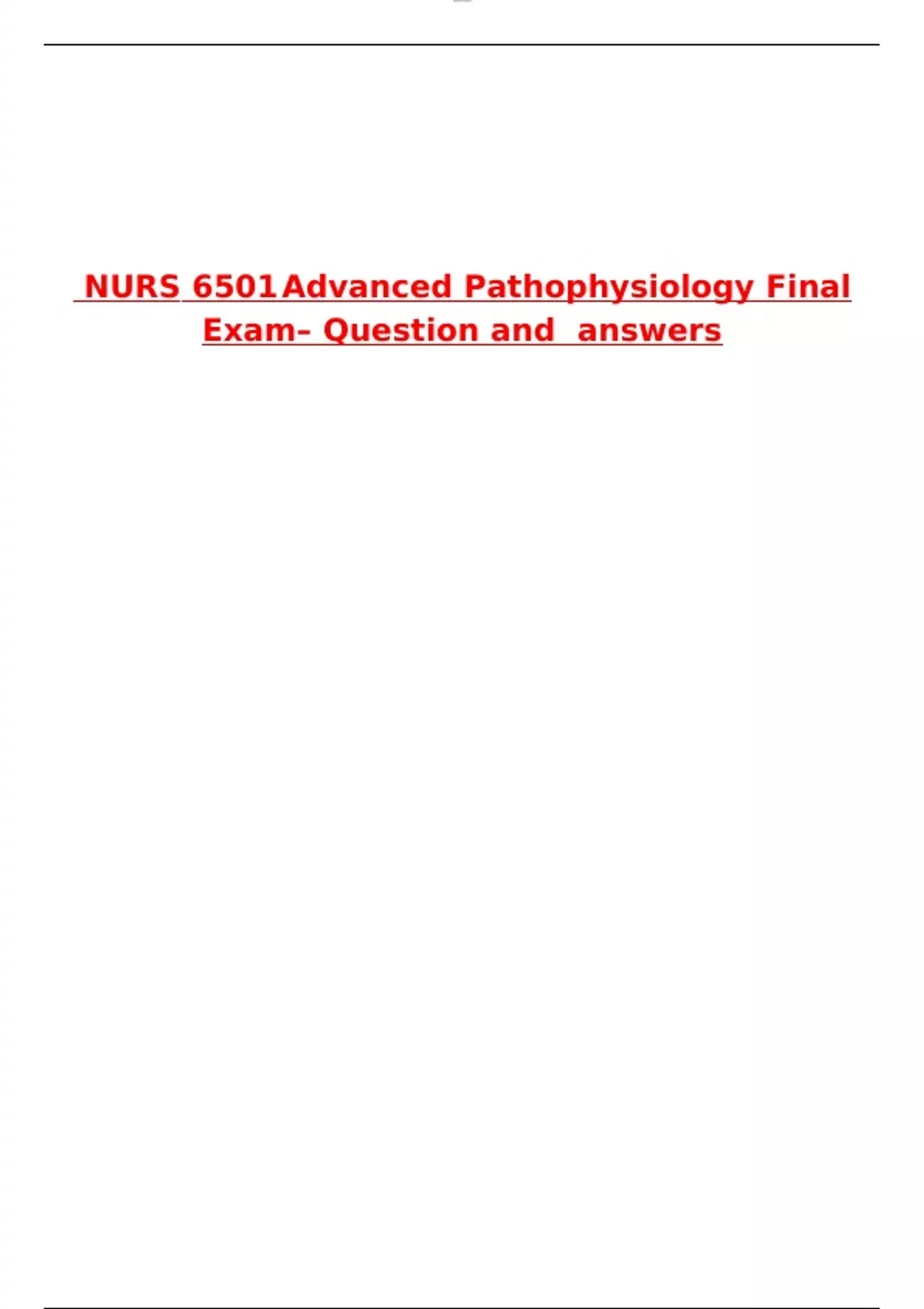 NURS 6501 Advanced Pathophysiology Final Exam– Question and answers
