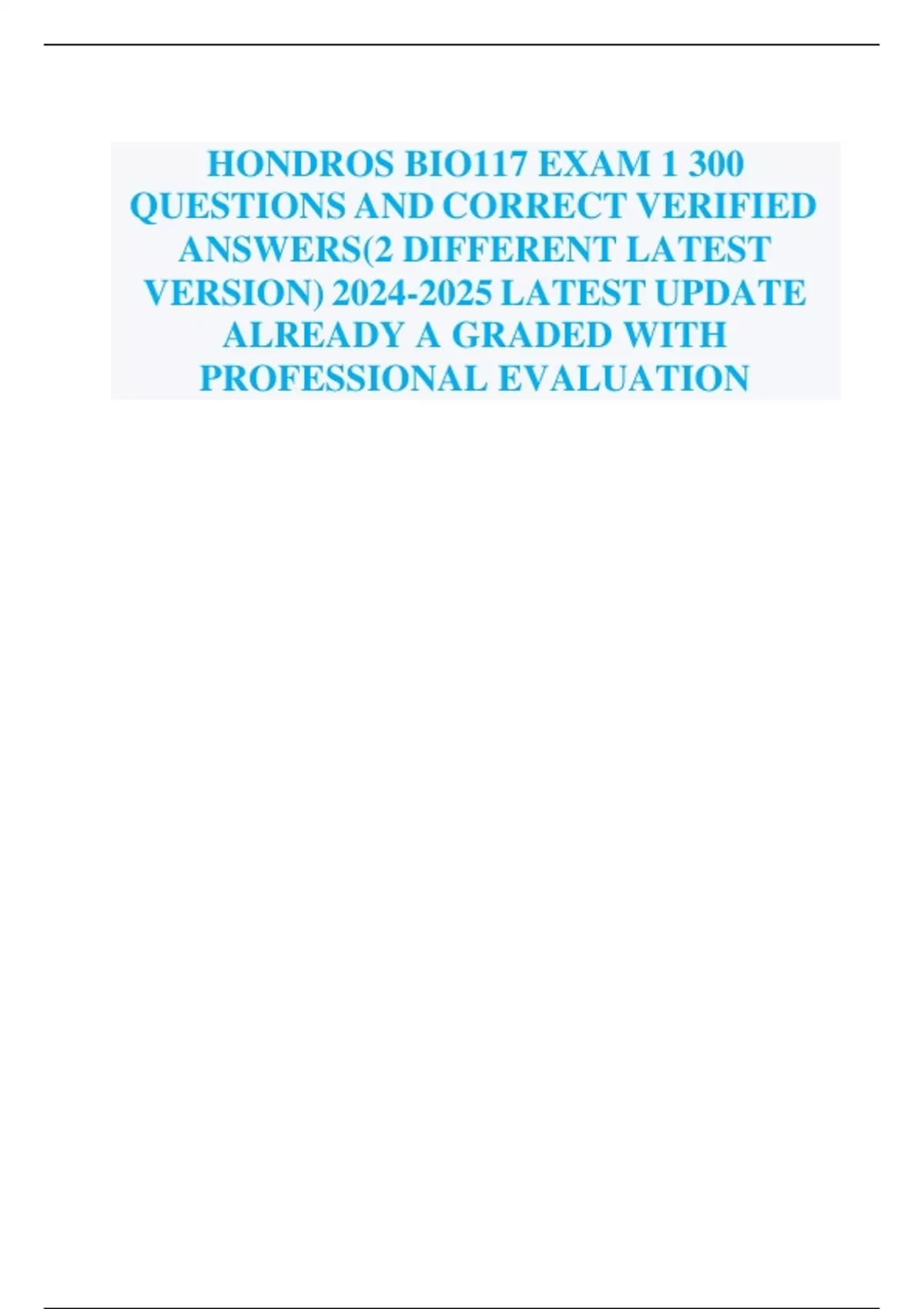 HONDROS BIO117 EXAM 1 300 QUESTIONS AND CORRECT VERIFIED ANSWERS(2 DIFFERENT LATEST VERSION) LATEST UPDATE ALREADY A GRADED WITH PROFESSIONAL EVALUATION ADVANCED