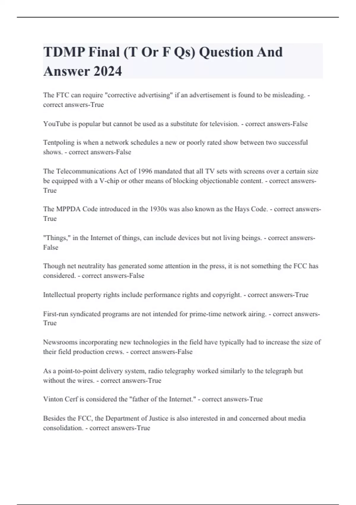TDMP Final (T Or F Qs) Question And Answer 2024