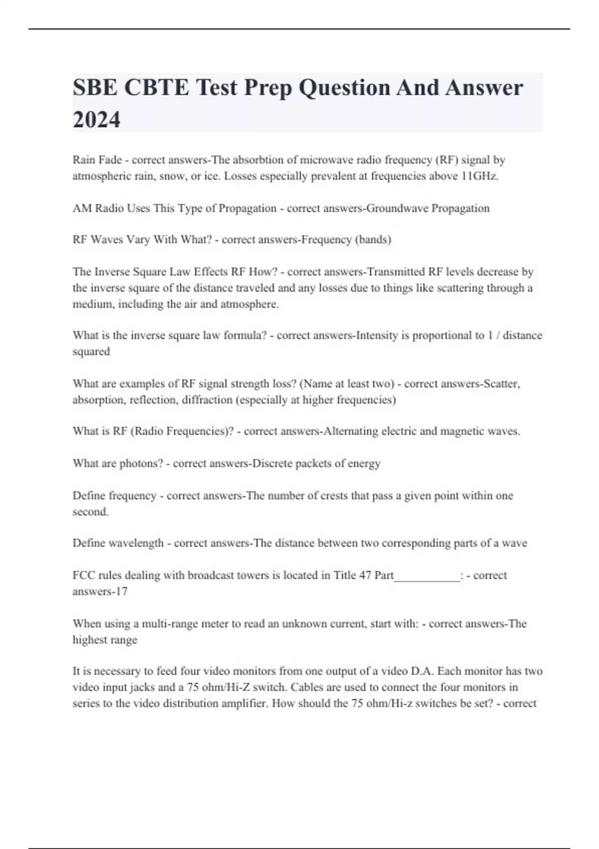 SBE CBTE Test Prep Question And Answer 2024