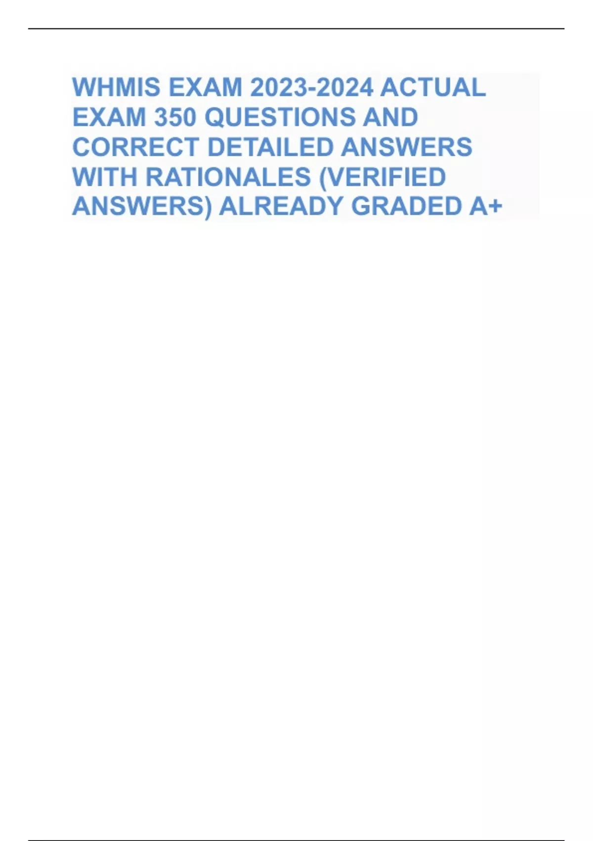 WHMIS EXAM ACTUAL EXAM 350 QUESTIONS AND CORRECT DETAILED ANSWERS WITH RATIONALES (VERIFIED ANSWERS) ALREADY GRADED A+