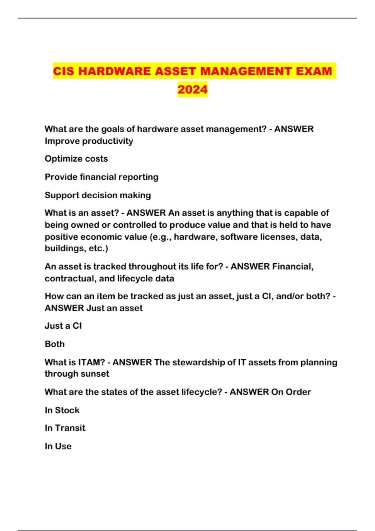 CIS HARDWARE ASSET MANAGEMENT EXAM 2024...