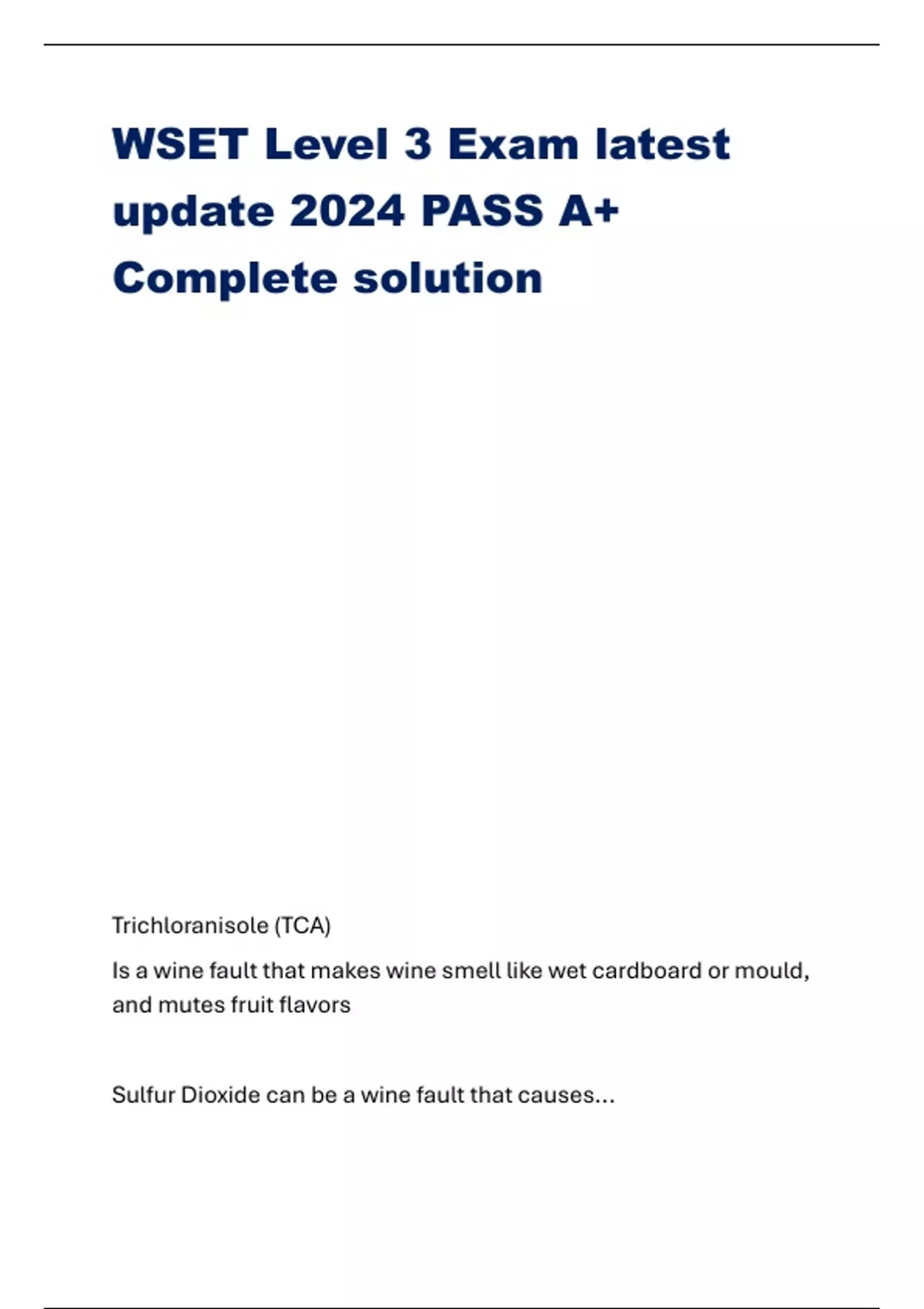 WSET Level 3 Exam latest update 2024 PASS A+ Complete solution Trichloranisole (TCA)