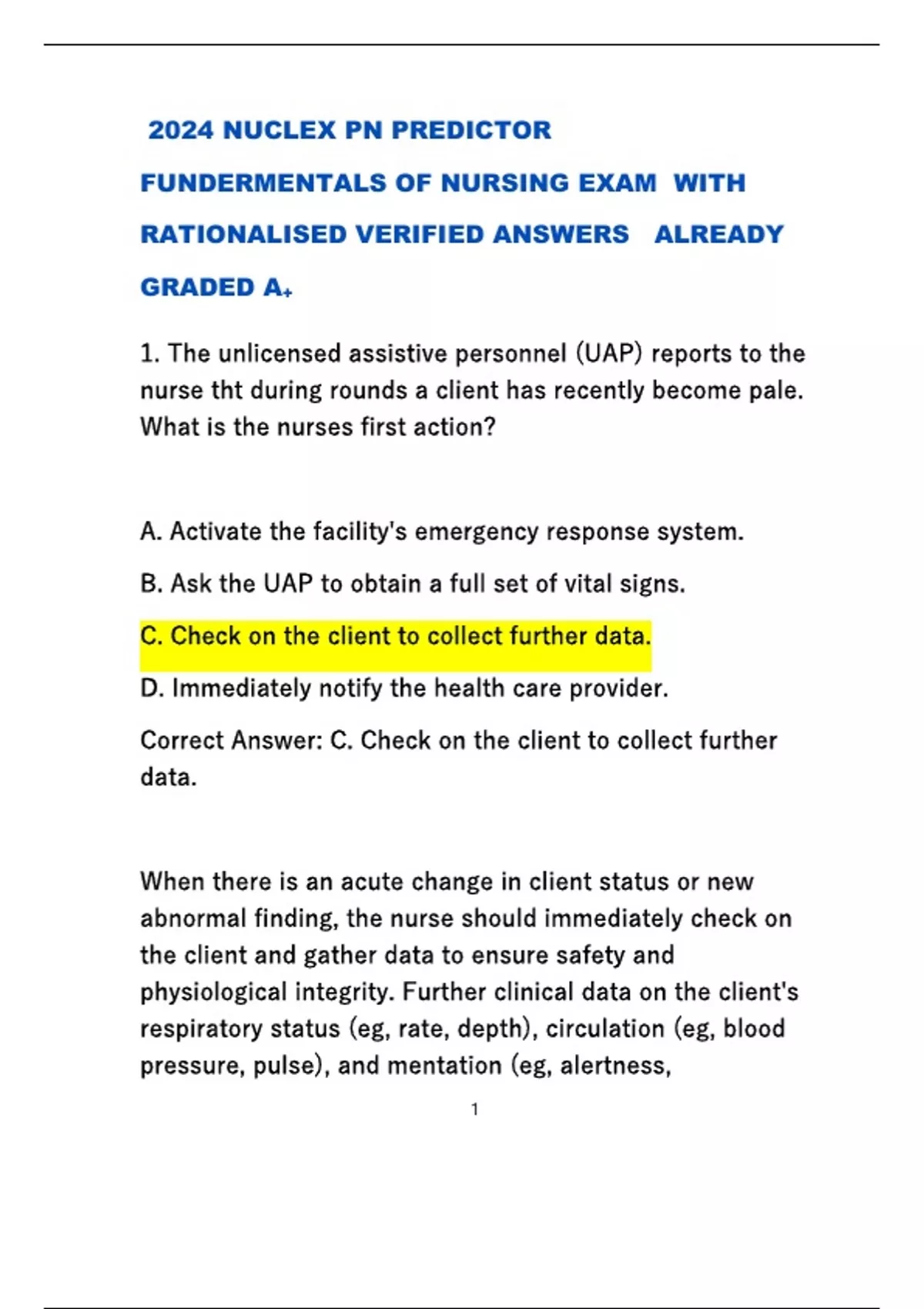 2024 NCLEX PN PREDICTOR FUNDERMENTALS OF NURSING EXAM WITH RATIONALISED VERIFIED ANSWERS ALREADY GRADED A+2024 NCLEX PN PREDICTOR FUNDERMENTALS OF NURSING EXAM WITH RATIONALISED VERIFIED ANSWERS ALREADY GRADED A+2024 NCLEX PN PREDICTOR FUNDERMENTALS OF NURSING EXAM WITH RATIONALISED VERIFIED ANSWERS ALREADY GRADED A+