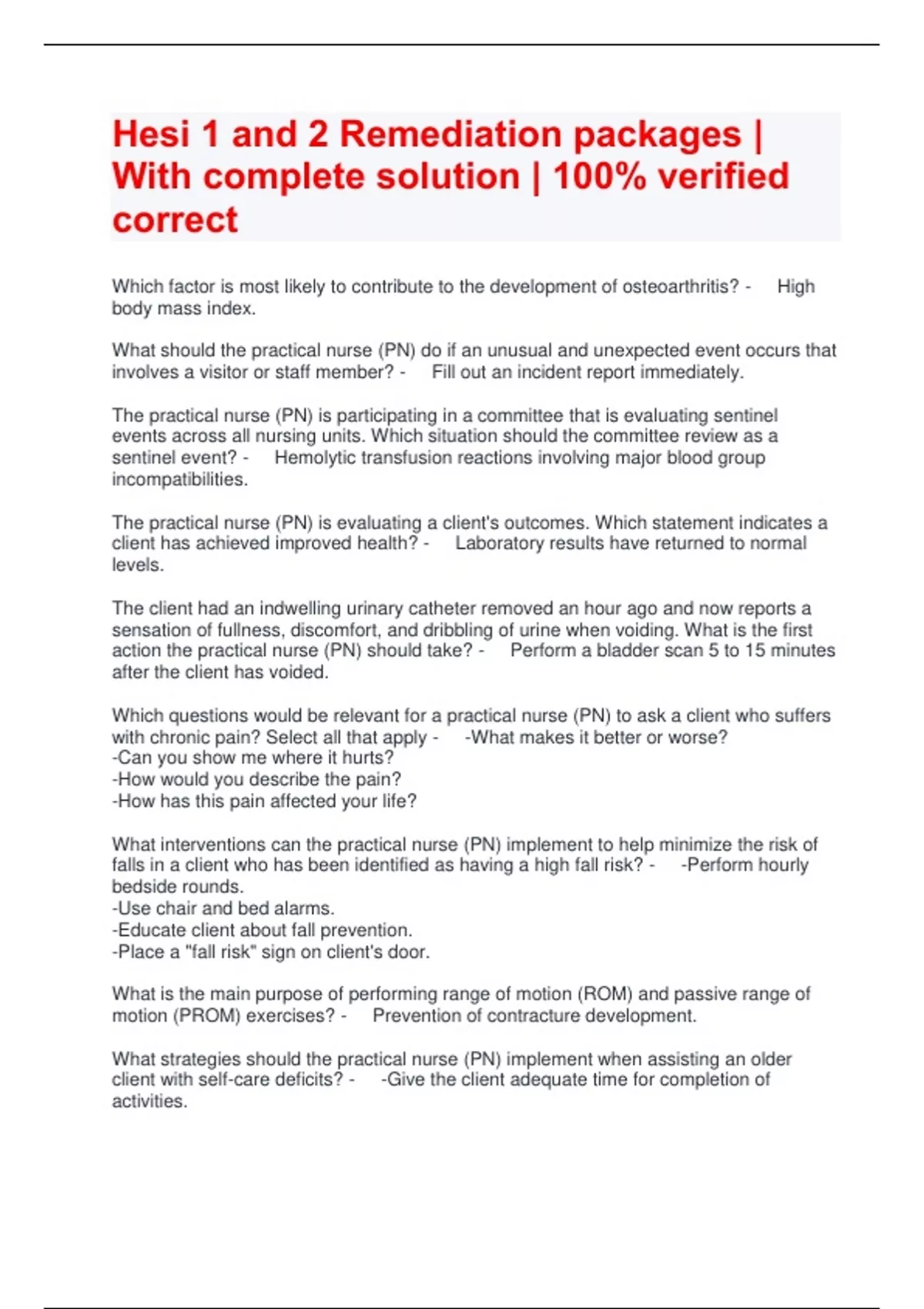 Hesi 1 and 2 Remediation packages | With complete solution | 100% verified correct