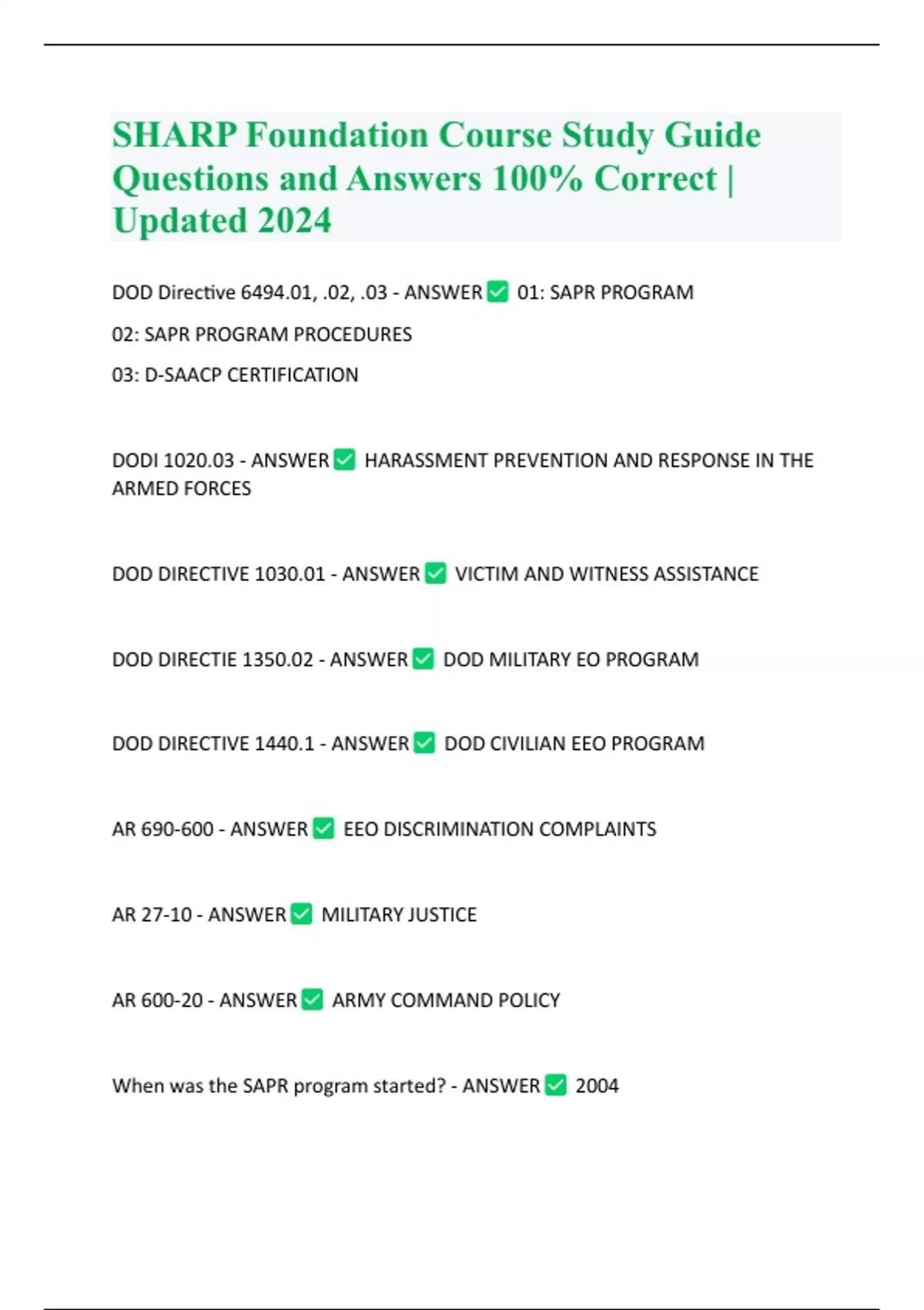 SHARP (Sexual Harassment Assault Response and Prevention) 2024 BUNDLED Exam Questions and Answers 100% Correct | Updated 2024 | WELL ILLUSTRATED