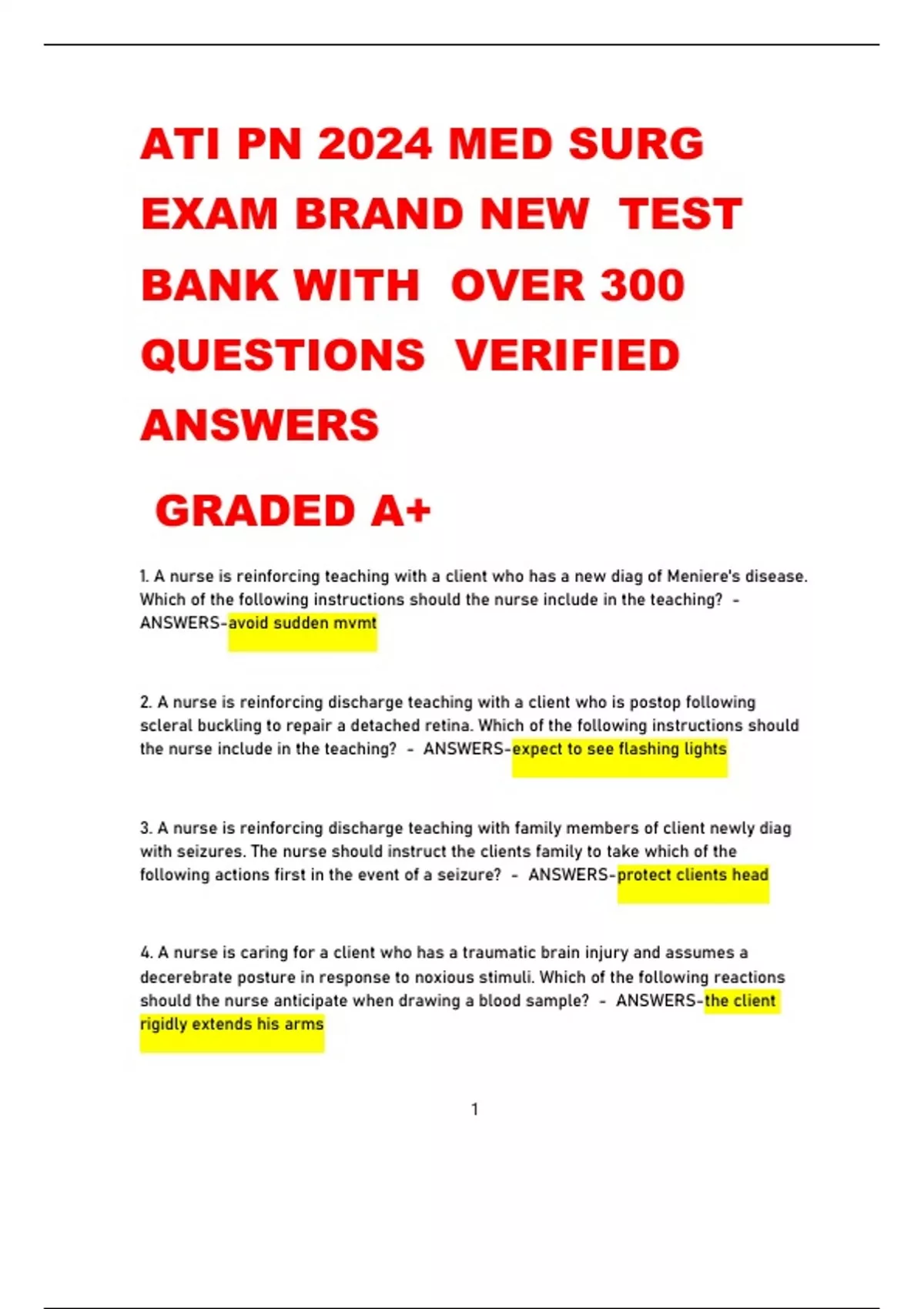 ATI PN 2024 MED SURG EXAM BRAND NEW TEST BANK WITH OVER 300 QUESTIONS VERIFIED ANSWERS GRADED A+ ATI PN 2024 MED SURG EXAM BRAND NEW TEST BANK WITH OVER 300 QUESTIONS VERIFIED ANSWERS GRADED A+ ATI PN 2024 MED SURG EXAM BRAND NEW TEST BANK WITH OVER 300 QUESTIONS VERIFIED ANSWERS GRADED A+