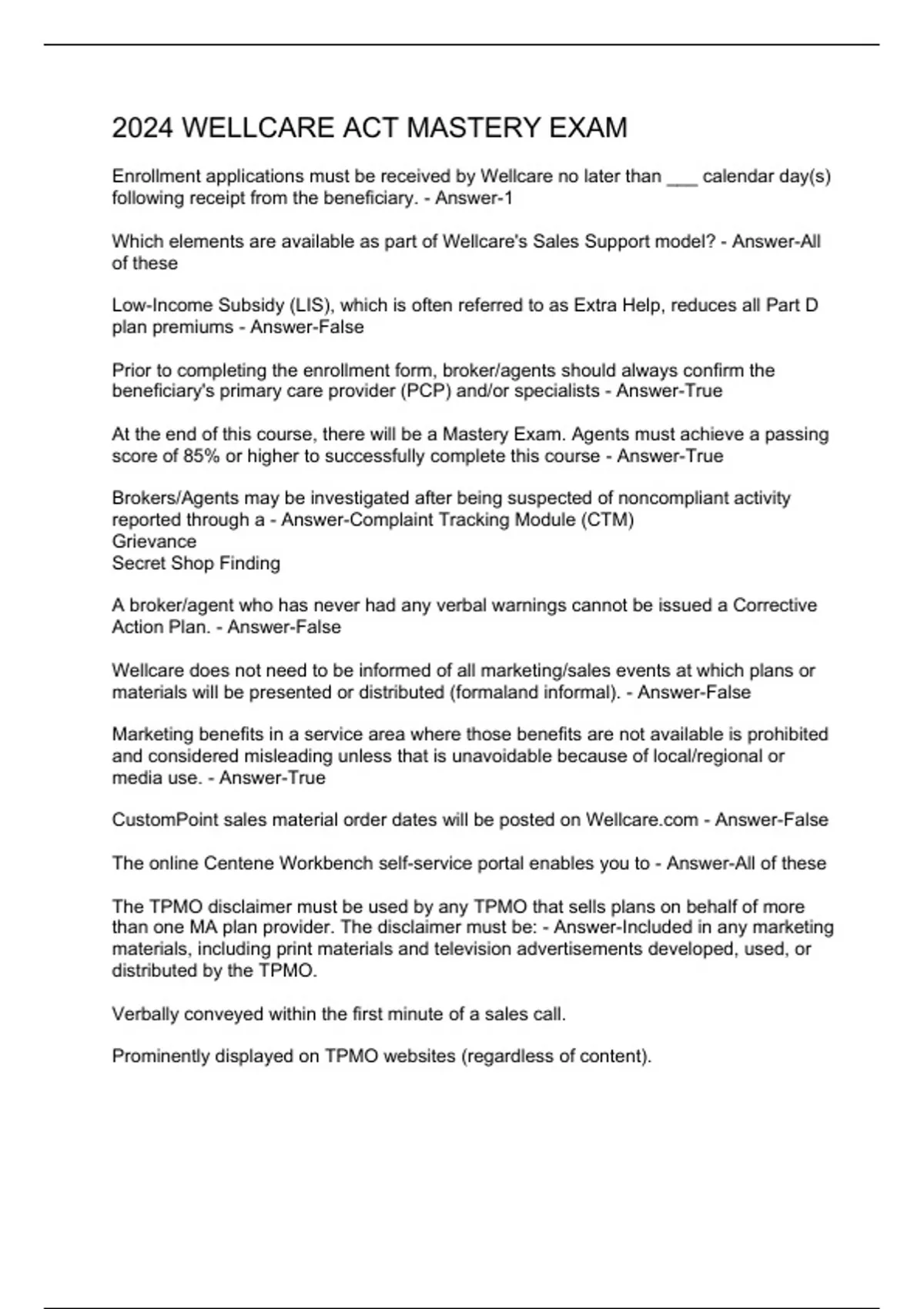 2024 wellcare act mastery exam
