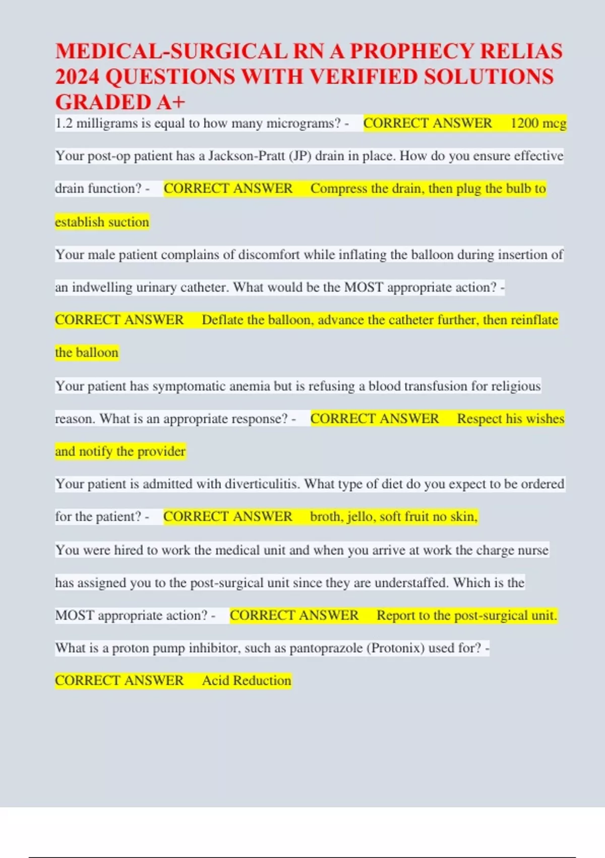 MEDICAL-SURGICAL RN A PROPHECY RELIAS 2024 QUESTIONS WITH VERIFIED SOLUTIONS GRADED A+