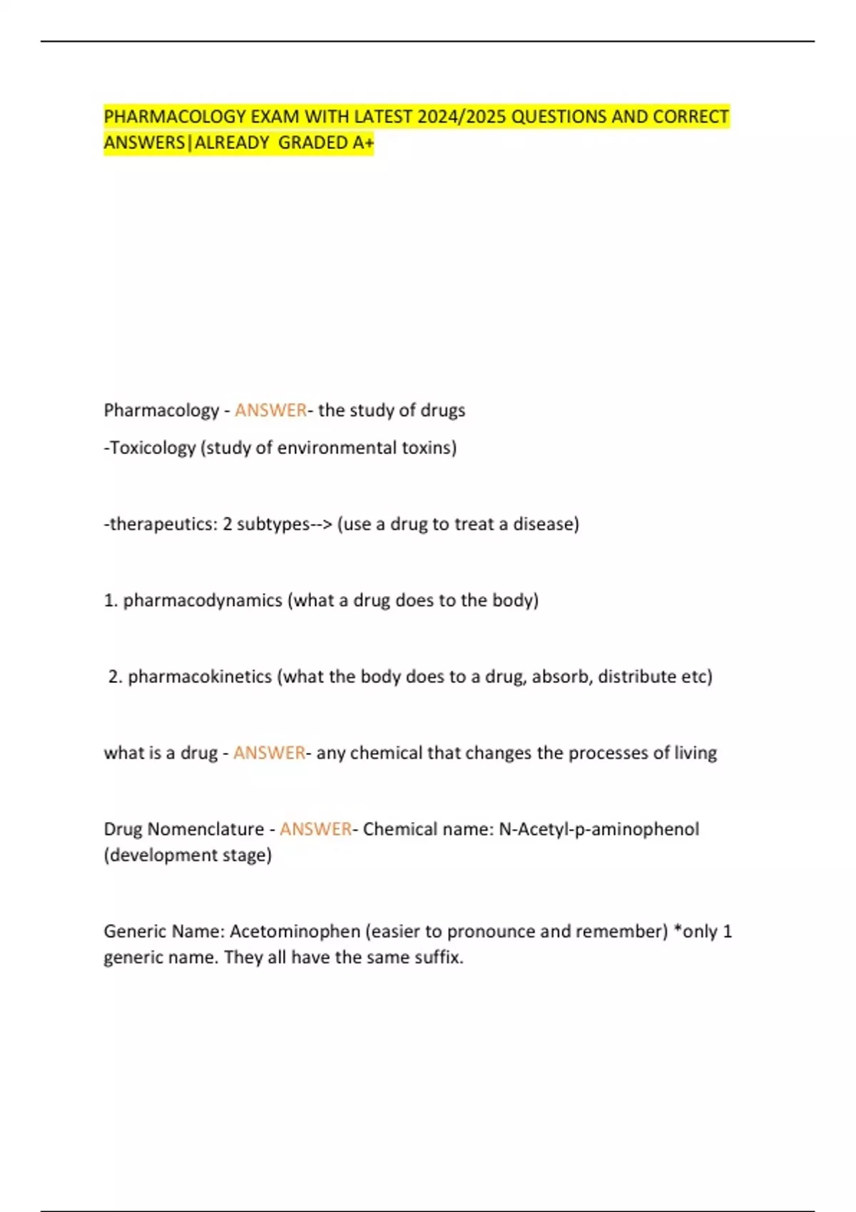 PHARMACOLOGY EXAM WITH LATEST 2024/2025 QUESTIONS AND CORRECT ANSWERS|ALREADY GRADED A+