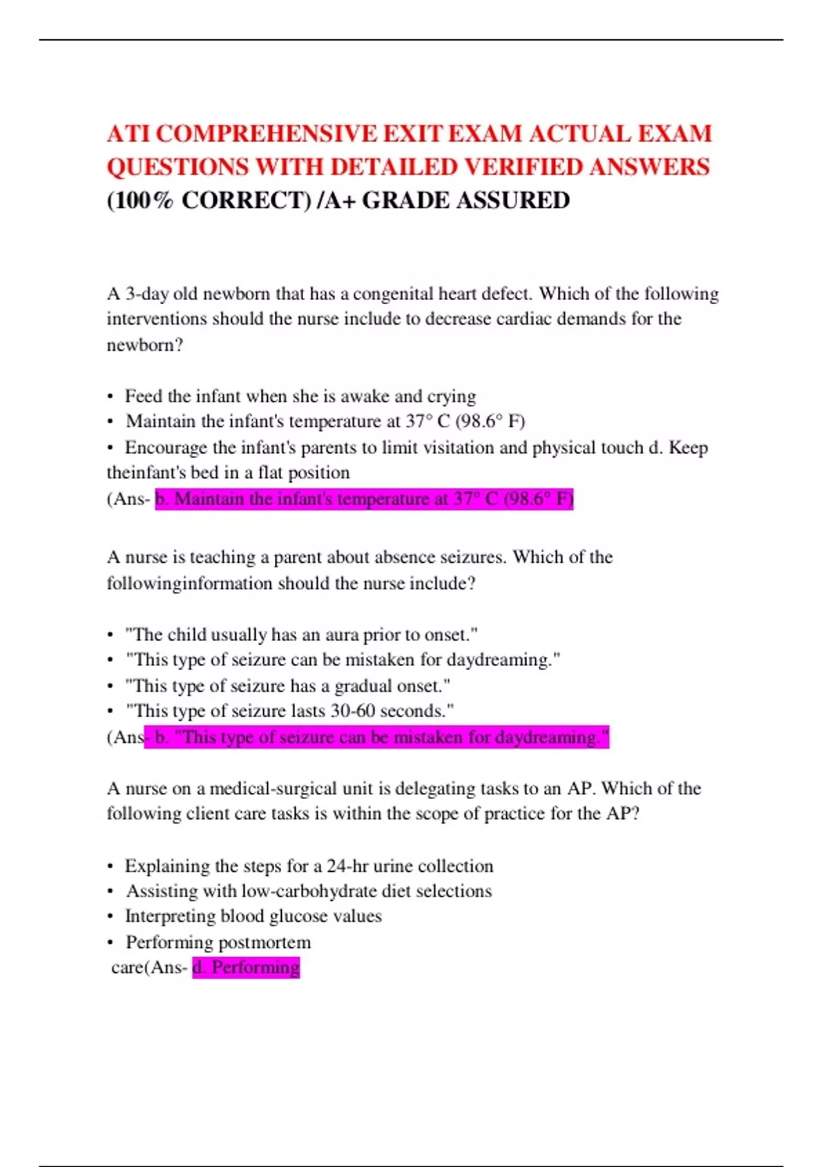 ATI COMPREHENSIVE EXIT EXAM ACTUAL EXAM QUESTIONS WITH DETAILED VERIFIED ANSWERS (100% CORRECT) A+ GRADE ASSURED