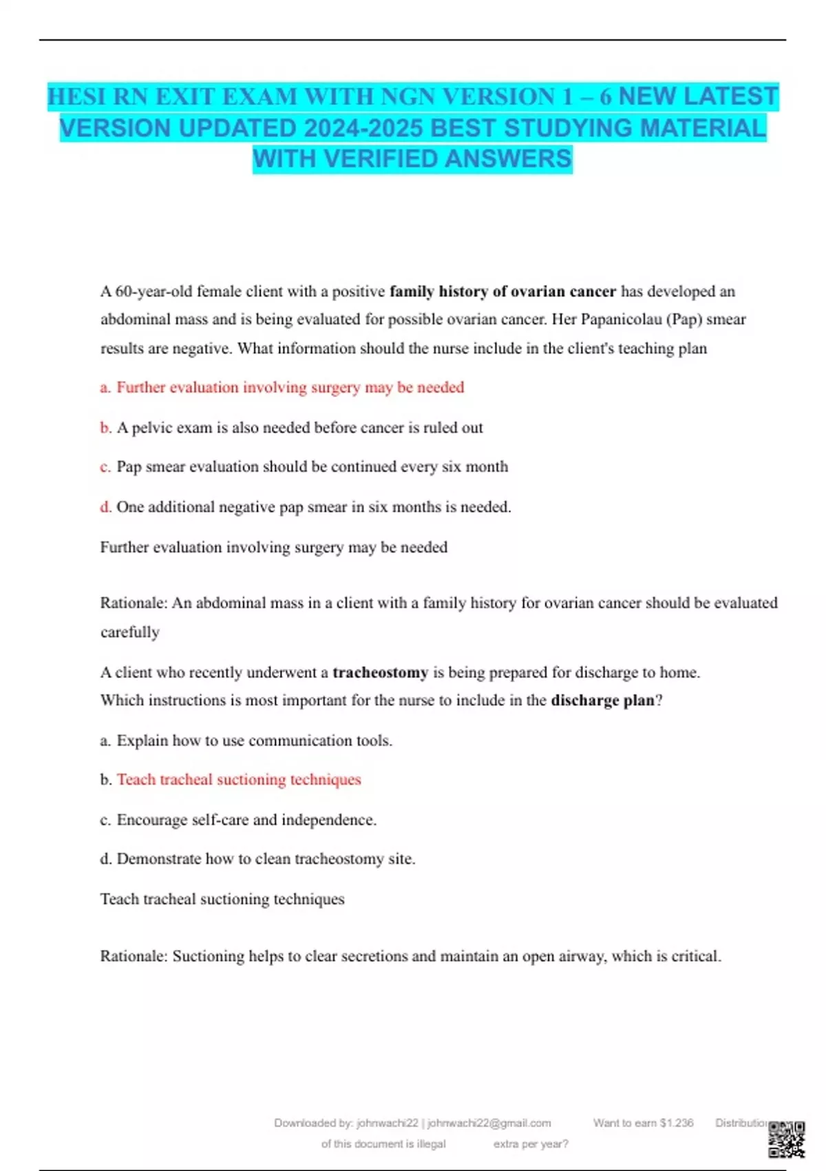 HESI RN EXIT EXAM WITH NGN VERSION 1 – 6 NEW LATEST VERSION UPDATED BEST STUDYING MATERIAL WITH VERIFIED ANSWERS
