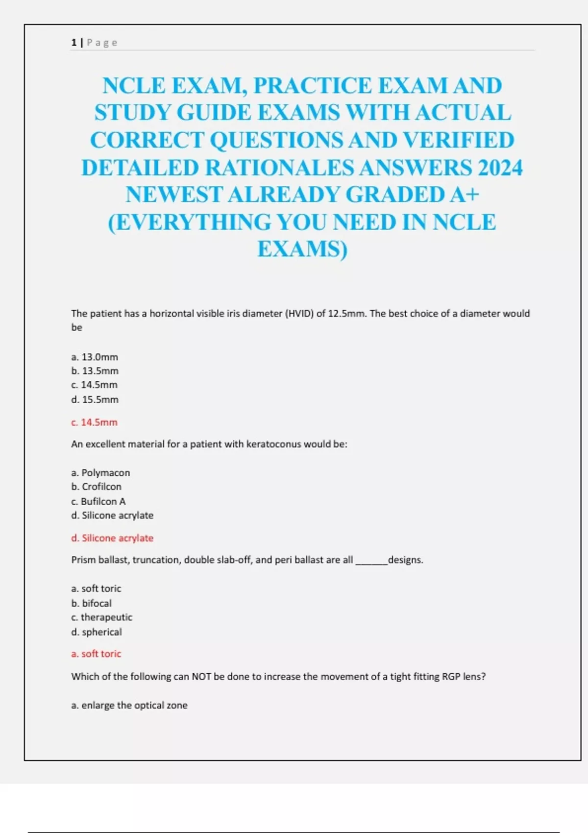 NCLE EXAM, PRACTICE EXAM AND STUDY GUIDE EXAMS WITH ACTUAL CORRECT QUESTIONS AND VERIFIED DETAILED RATIONALES ANSWERS 2024 NEWEST ALREADY GRADED A+ (EVERYTHING YOU NEED IN NCLE EXAMS)