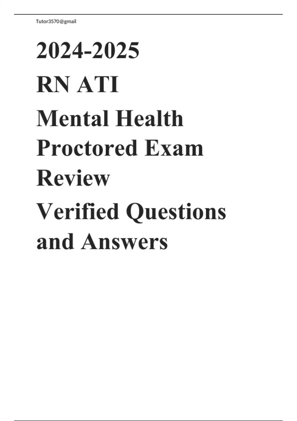 RN ATI Mental Health Proctored Exam Review Verified Questions and Answers