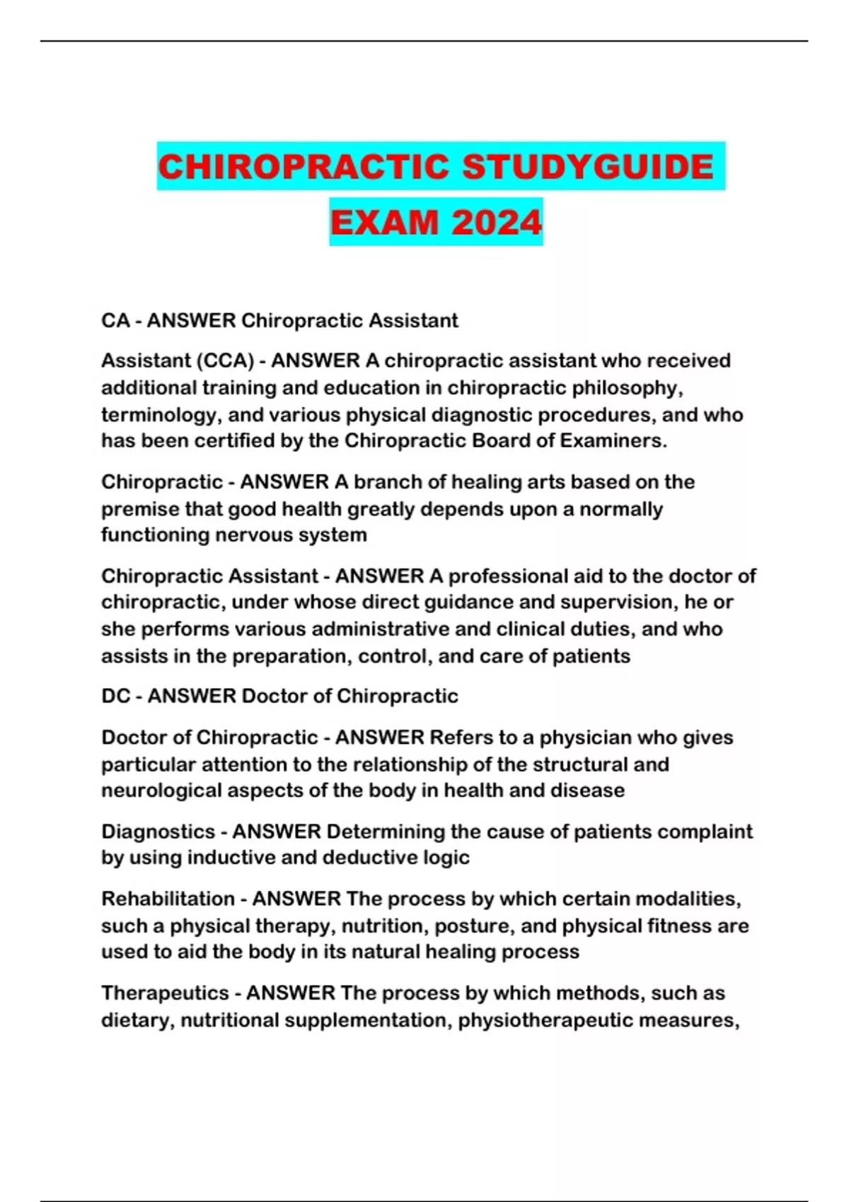CHIROPRACTIC STUDYGUIDE EXAM 2024...