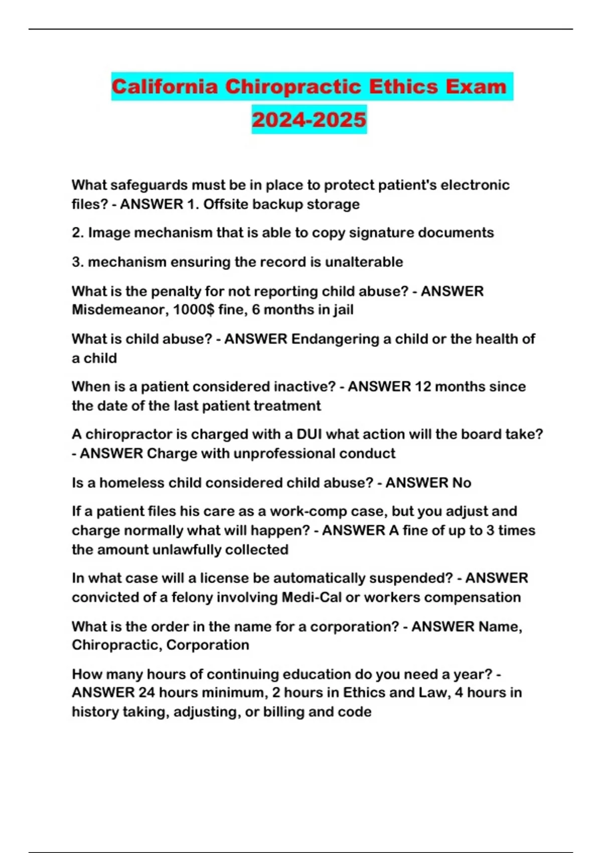 California Chiropractic Ethics Exam ...