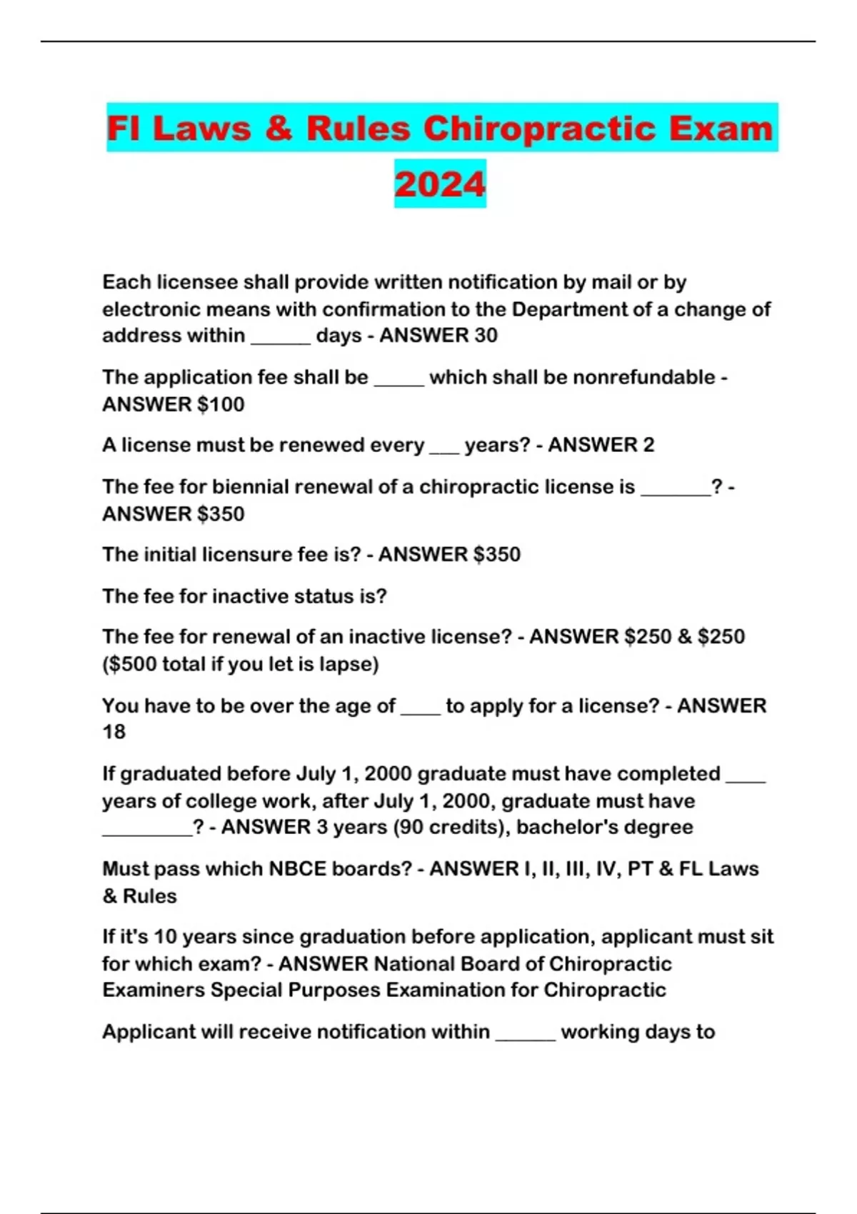 Fl Laws & Rules Chiropractic Exam 2024...