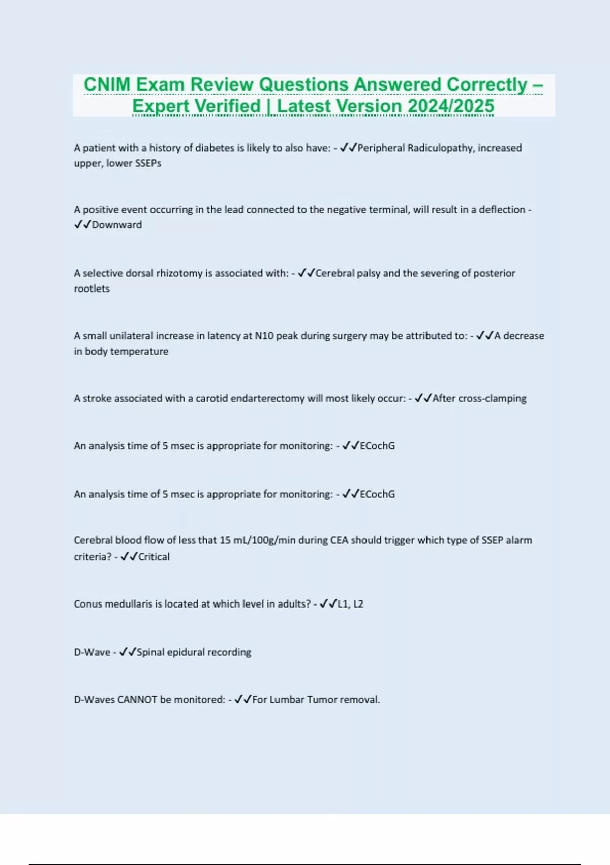 CNIM Exam Review Questions Answered Correctly – Expert Verified | Latest Version 2024/2025