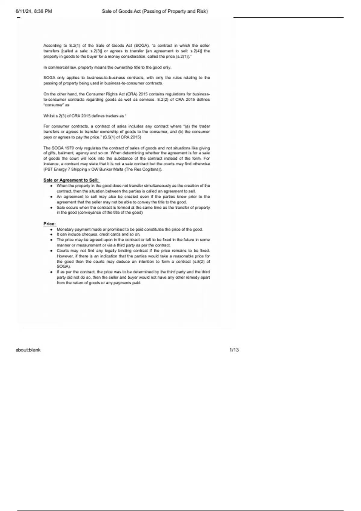 , 6/11/24, 8:38 PM Sale of Goods Act (Passing of Property and Risk)