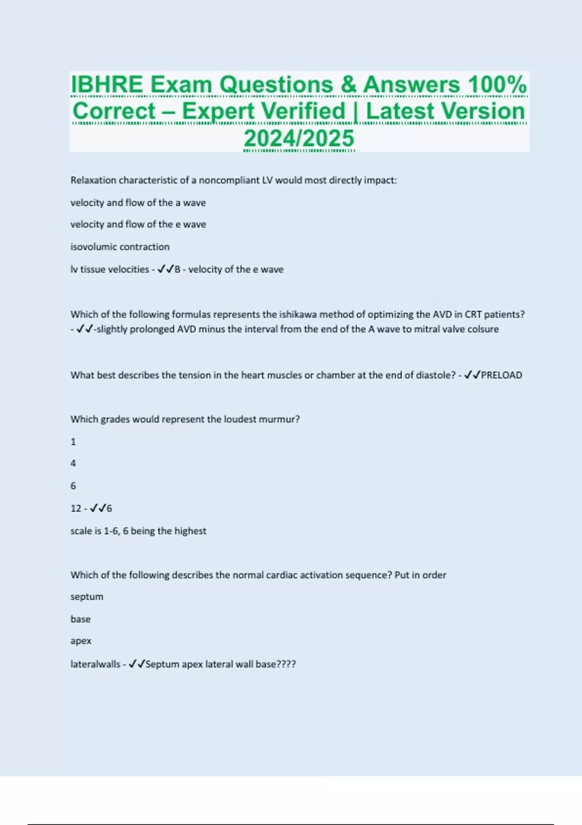 IBHRE Exam Questions & Answers 100% Correct – Expert Verified | Latest Version 2024/2025