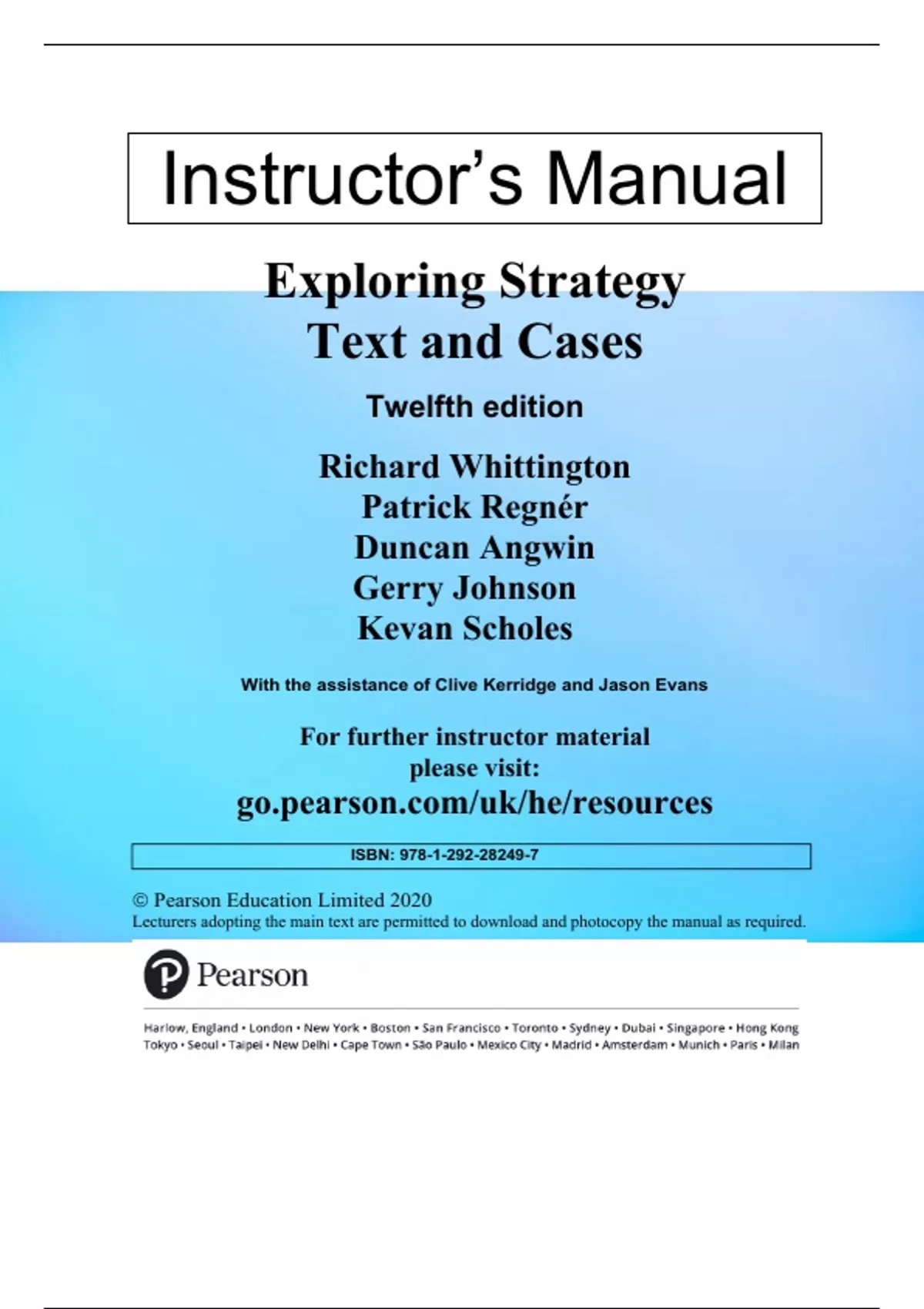 Solution Manual for Exploring Strategy Text And Cases 12th Edition Gerry Johnson, Richard Whittington| Complete Verified Chapter's |