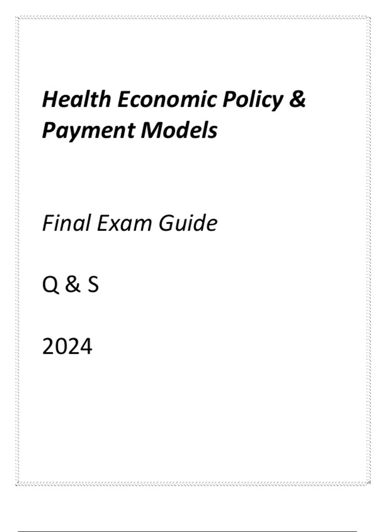 (ASU online) Health Economic Policy & Payment Models Final Exam Guide Q & S 2024(ASU online) Health Economic Policy & Payment Models Final Exam Guide Q & S 2024(ASU online) Health Economic Policy & Payment Models Final Exam Guide Q & S 2024